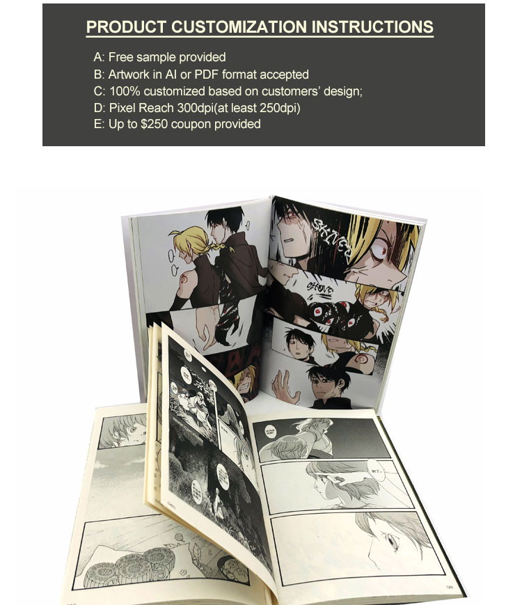 Full color hardcover or softcover anime book manga comic children reading books custom printing serv