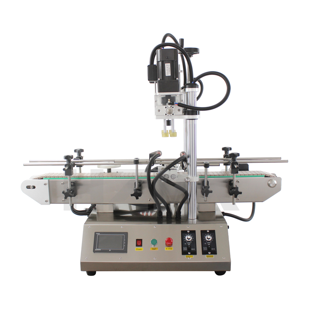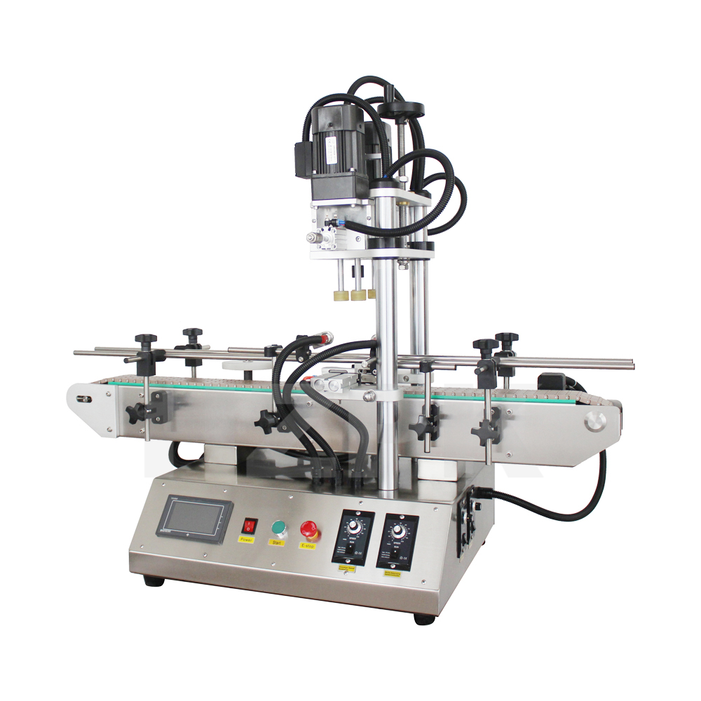 Introduction:TRCM-200B automatic tabletop spray bottles capping machine is mainly used for capping various of caps, such as spray bottles, plastic bottles, glass bottles, cosmetic bottles, water bottles etc. The capping machine is widely used in food, medicine, pesticide and chemical industries.Features:1. Smart capping equipment, simply place the workpiece and automatically complete the capping. 2. It is easy to adiust capping height, speed. 3. Desktop design, simple structure, small shape, powerful function. 5. The body of machine made of stainless steel, witch is effective against corrosion and destroy. 6. The machine complies with CE certification.