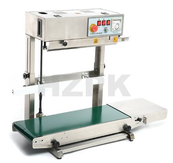 FR-450 vertical continuousl sealing machine is in the function on continuous carry,seal and print in one operation,enable to horizontally,vertically and with stand, the machine adopts electronic constant temperature mechanism and stepless speed adjusts transmission mechanism.