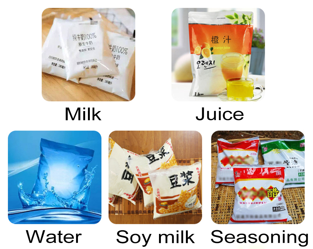 Automatic plastic pouch liquid filling machine is applicable for filling and sealing liquid into bag, like water, juice, milk etc. It can automatically finish making-bag, metering, filling, sealing, cutting, counting and printing batch number.Features:1. frame and Liquid Contacting parts are 304 stainless steel. 2. Film output system: Composed of 304 stainless steel sliding rail plate. 3. Electrical control system: Composed of control panel, wiring, and the AC contactor system. 4. Equip UV sterilizer and date coder. 5. Data counting unit is equipped on the front panel.