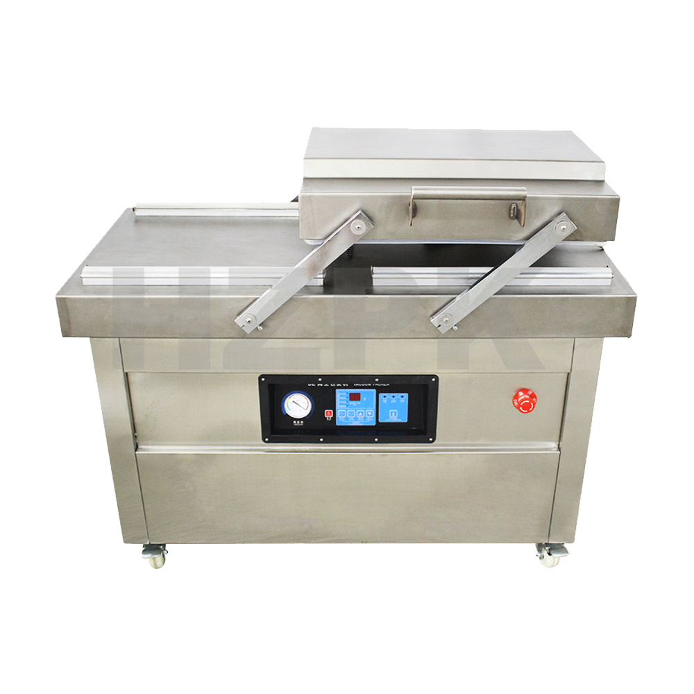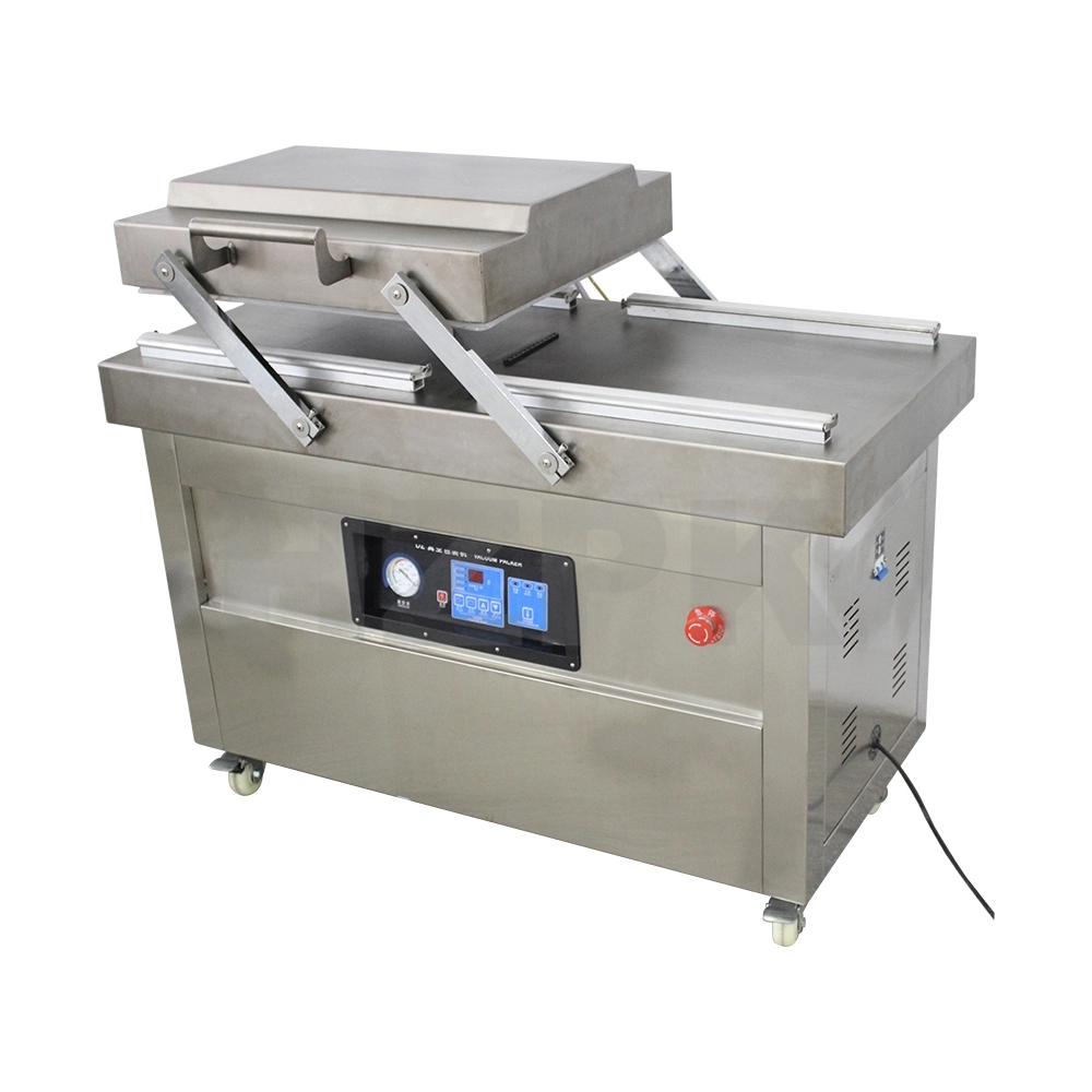 DZ-400/2S can be a single or more pieces of packaging, suitable for small-scale continuous operation,high effciency.Features: 1. Easy to operate, the machine simply press the vacuum chamber cover can be completed according to the producers set vacuum. 2. The vacuum packaging items in a sealed stase to prevent oxidation, midew, insects, moisture, extend product storage period. 3. Double chamber vacuum packaging machine, two vacuum chambers are used interchangeably, improve work efficiency. 4. It also have DZ-500/2S, DZ-600/2S. The machines differ in that the models are larger.