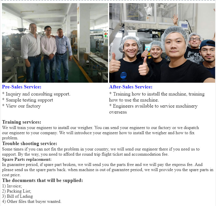 Engineers available to service machinery overseas, Video technical support, Free spare parts, Field installation, commissioning and training, Field maintenance and repair service