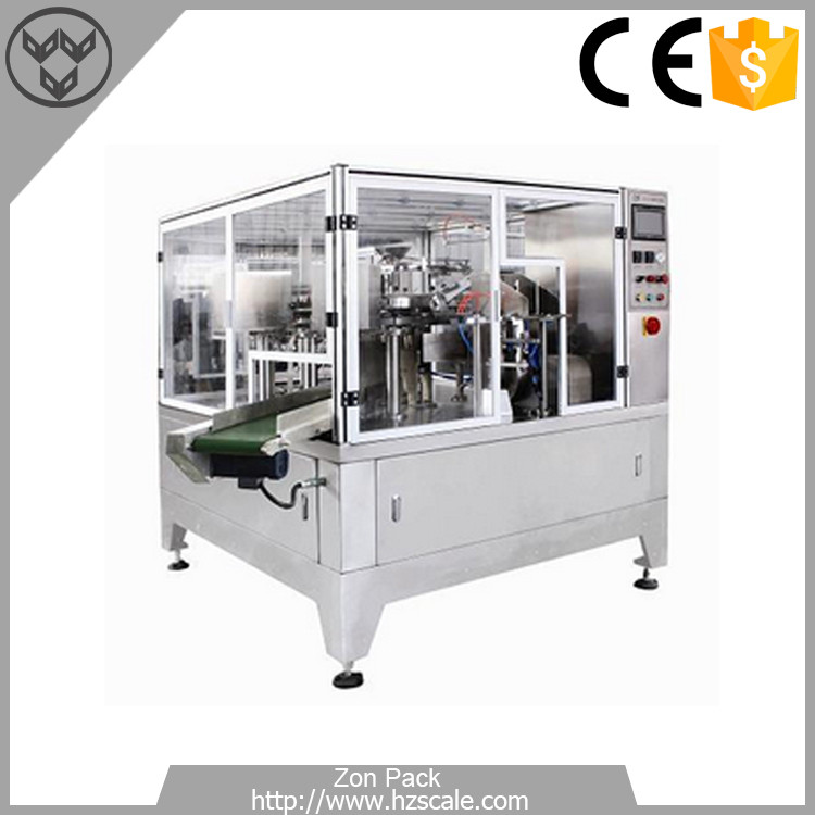 ZH-G8 Rotary packing machine is developed for premade bag, stand-up bag with or without zipper. It is suitable for packing product of powder, irregular shape, thick liquid and liquid, such as gourmet powder, chicken powder, seasoning powder, candy, fruits, nut, pet food, roasted seeds, puffed food, frozen food, small hardware and hand sanitizer.
