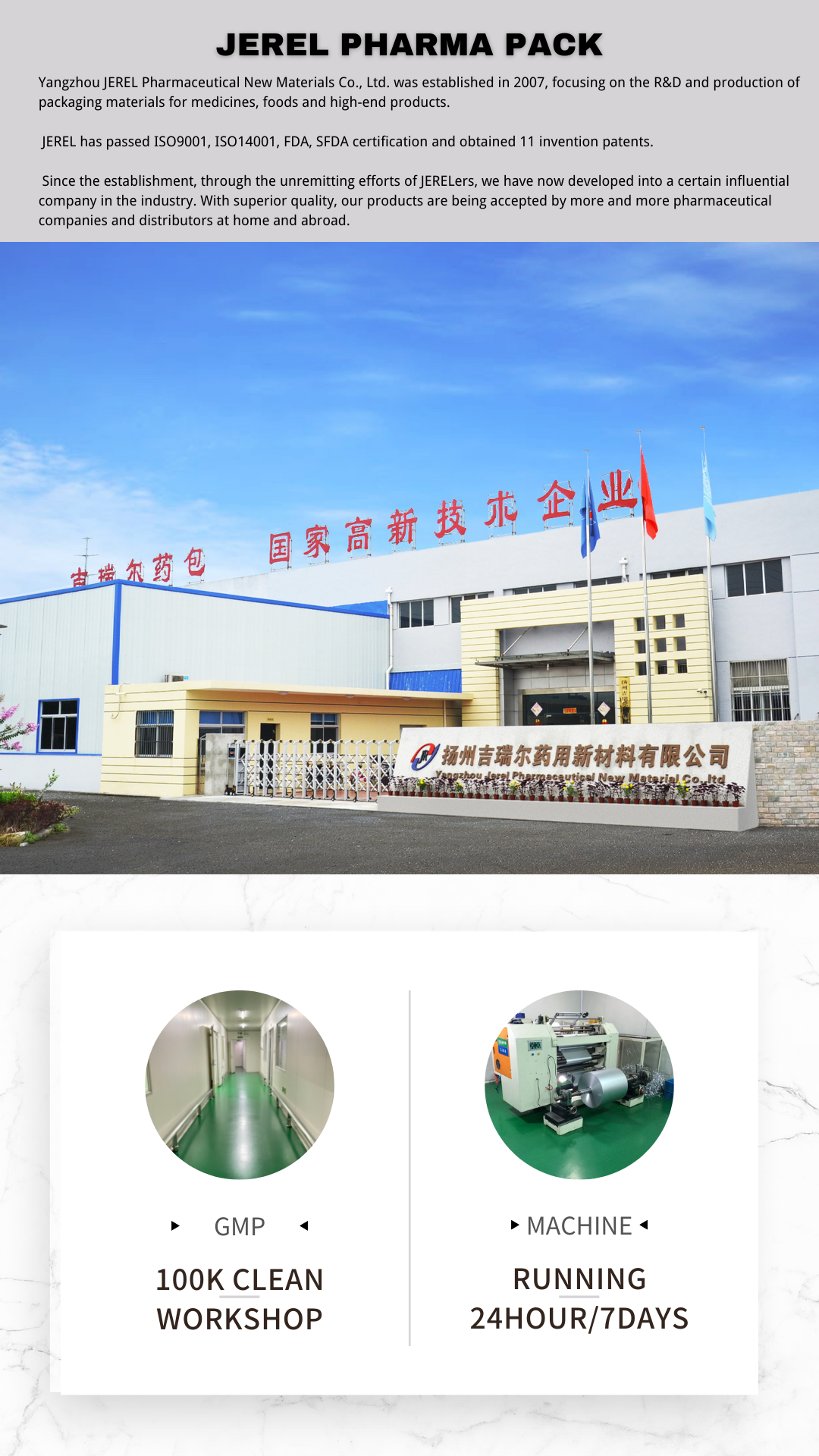 JEREL pill blister packaging aluminum foil price tablet foil JEREL lacuqered pill blister packaging pharmaceutical foil JEREL cold form foil blister aluminum foil medical pack JEREL heat seal Cold Form Pharmaceutical Alu Alu Blister Aluminum Foil can be printed JEREL Alu Alu Cold Forming Aluminium blister foil for medical packaging with ISO & TUV certificates Pharmaceutical pvcpe roll compound pvc pvcpe pvdc film pvc sheet for medical packing JEREL 0.25-0.4mm Thickness coffee amber white opaque TPT pharmaceutical grade PVC rigid sheet JEREL Pharmaceutical AL/PE Strip aluminum foil blister pack for pills tablet capsule