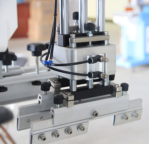 5. The left and right movements of the printing head are driven by linear guide rails. Double guide column left and right mesh clamping arm, at the same time install plate distance adjustment device,printing accuracy: ± 0.03mm, running speed can reach 1800 times per hour.
