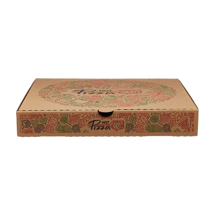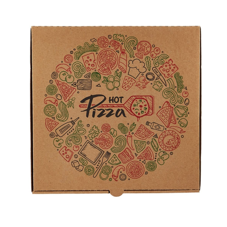 The pizza box is a folding box made of cardboard in which hot pizzas are stored for takeaway, Our pizza box design is tried-and-tested in keeping pizza pies warm and dry during delivery, providing the function of conventional pizza boxes and your custom design.