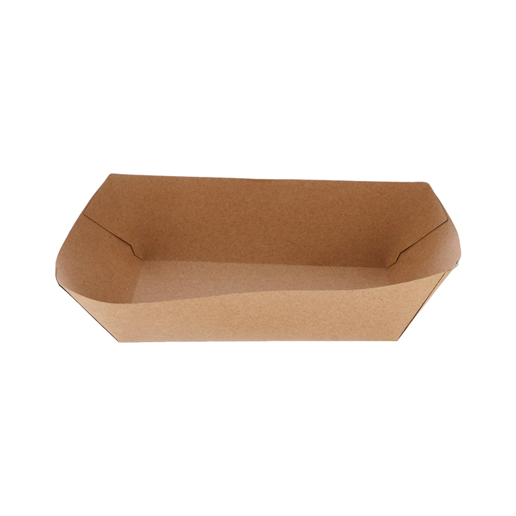 Any high-traffic food stall, drive-through window, or quick-serve restaurant will love this Kraft boat food tray. This meal tray is made of natural kraft paper and is both eco-friendly and disposable! After each use, just dispose of it or recycle it to make cleanup easier than ever. The tray may be used for fried foods like french fries, chicken tenders, mozzarella sticks, and other fried favorites, as well as cold foods like vegetables, fruit, hot dog, and macaroni salad. The open-top design allows customers to easily top off their tray with numerous sauces, dips, and condiments, while the one-piece coated paper structure provides strong and consistent use. The paper tray is the perfect choice for the food parcel, also used for sharing cake or tofu at a party.