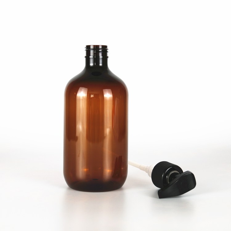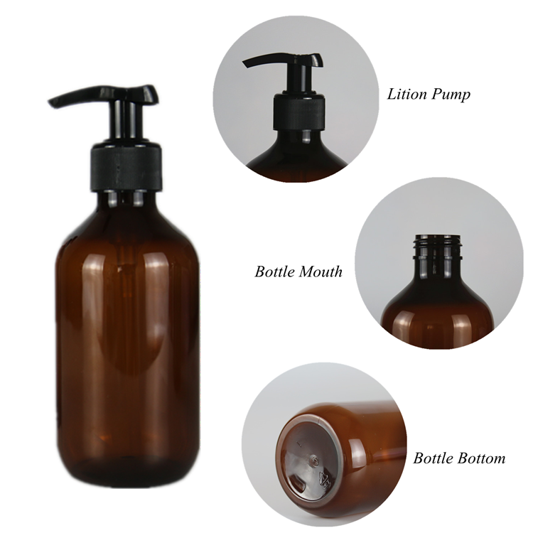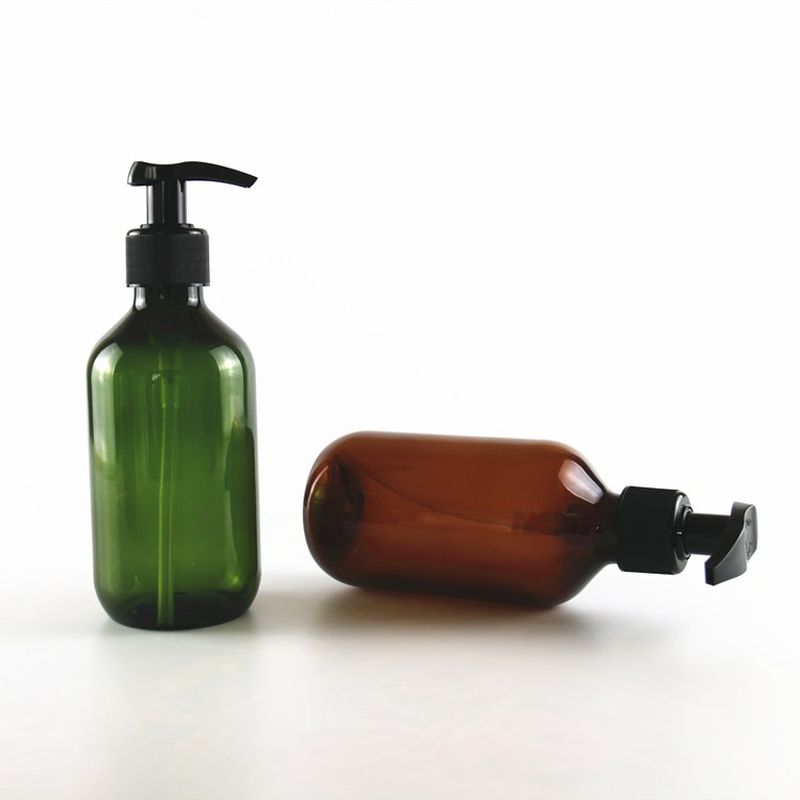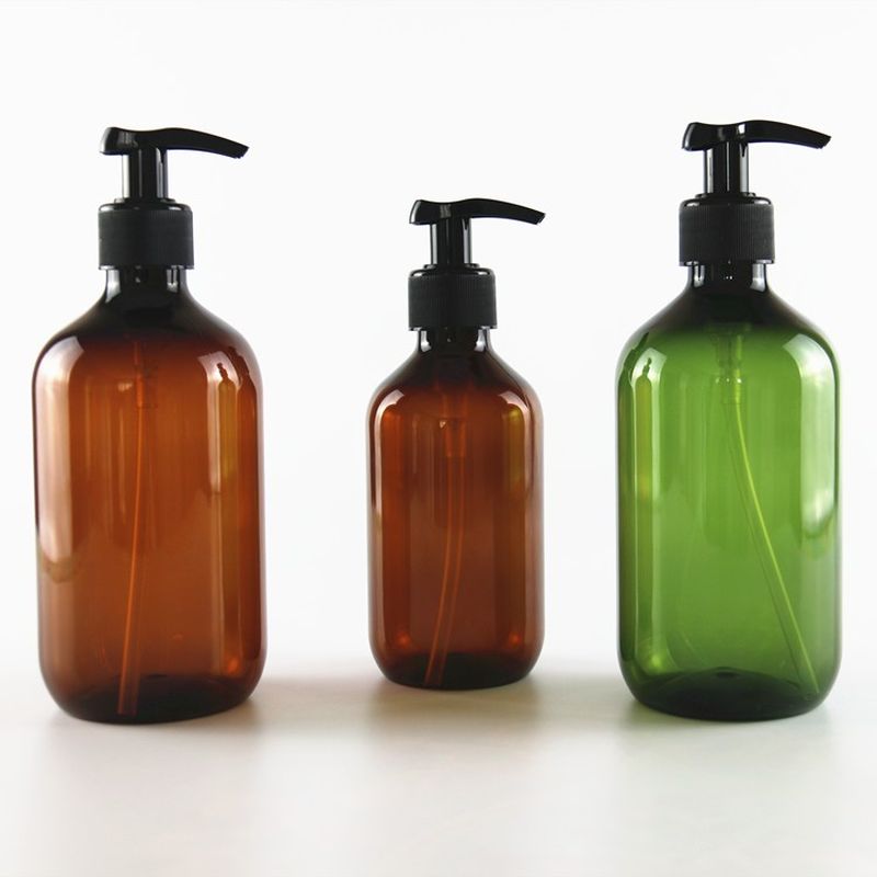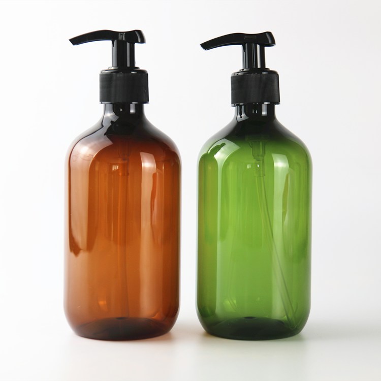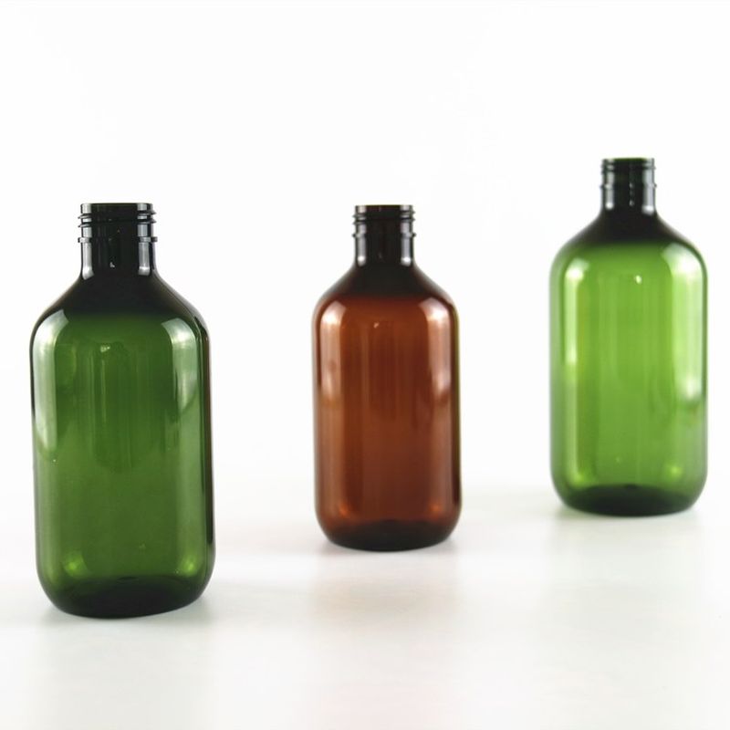 Amber Green Round Shoulder PET Plastic Shampoo Bottle