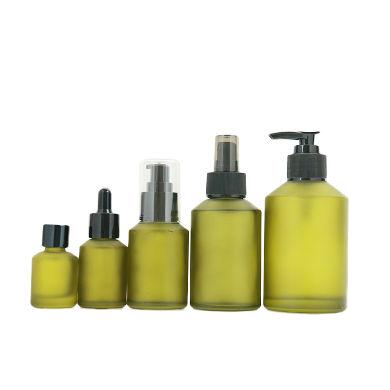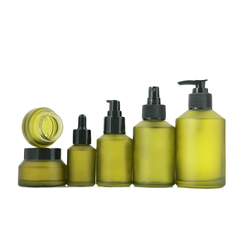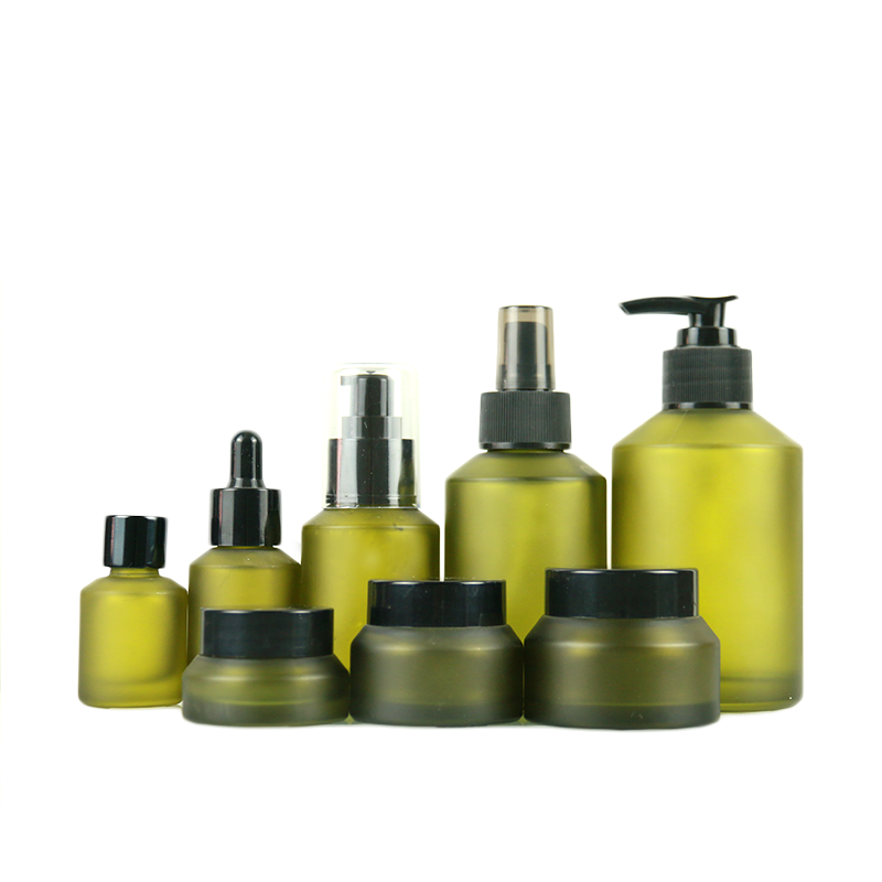 30ml 60ml 100ml 30g 50g Matte Green Spray Lotion Pump Dropper Glass Perfume Essential Oil Bottle Facial Cream Jar Sets