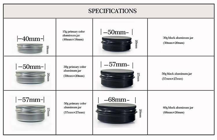 15g 30g 50g 60g 100g silver black aluminum jar in stock