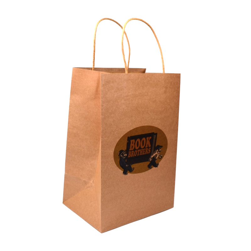 Wholesale Grocery Custom Logo Printed Brown Kraft Paper Gift Bag with Handle Industrial Surface Pack