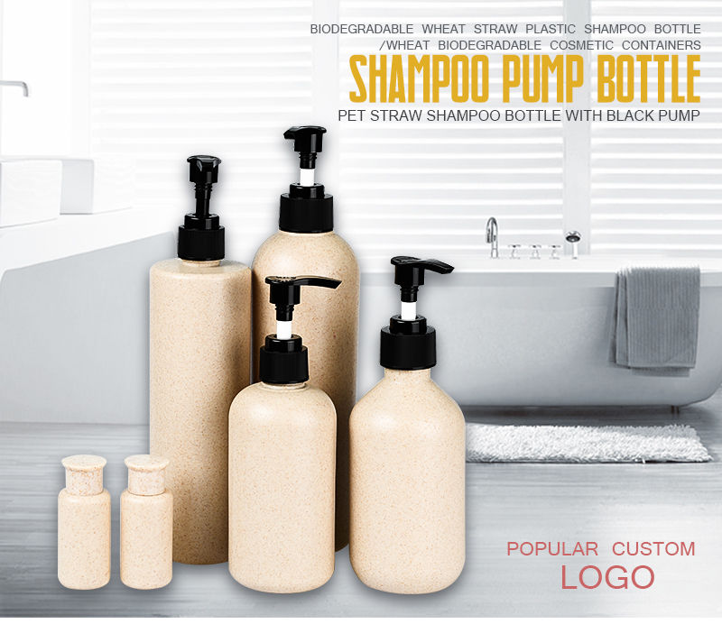 Eco-friendly Biodegradable 30ml 100ml 250ml 300ml 500ml wheat straw PE plastic pump bottle for hair conditioner shampoo