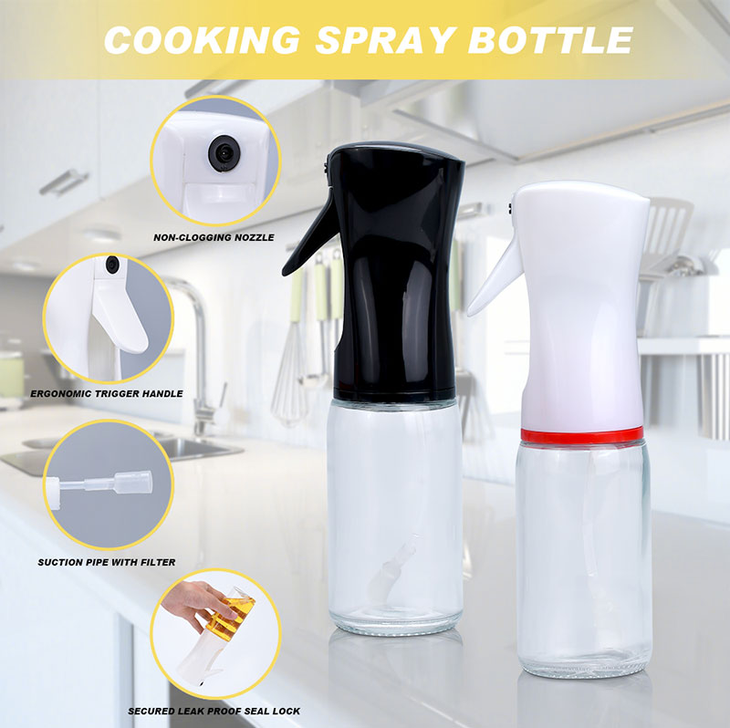 Clear Glass Control Oil Bottle Press Type Oil Bottle 200ml 7oz Press Spray Bottle Kettle Cup Kitchen Storge Supplies