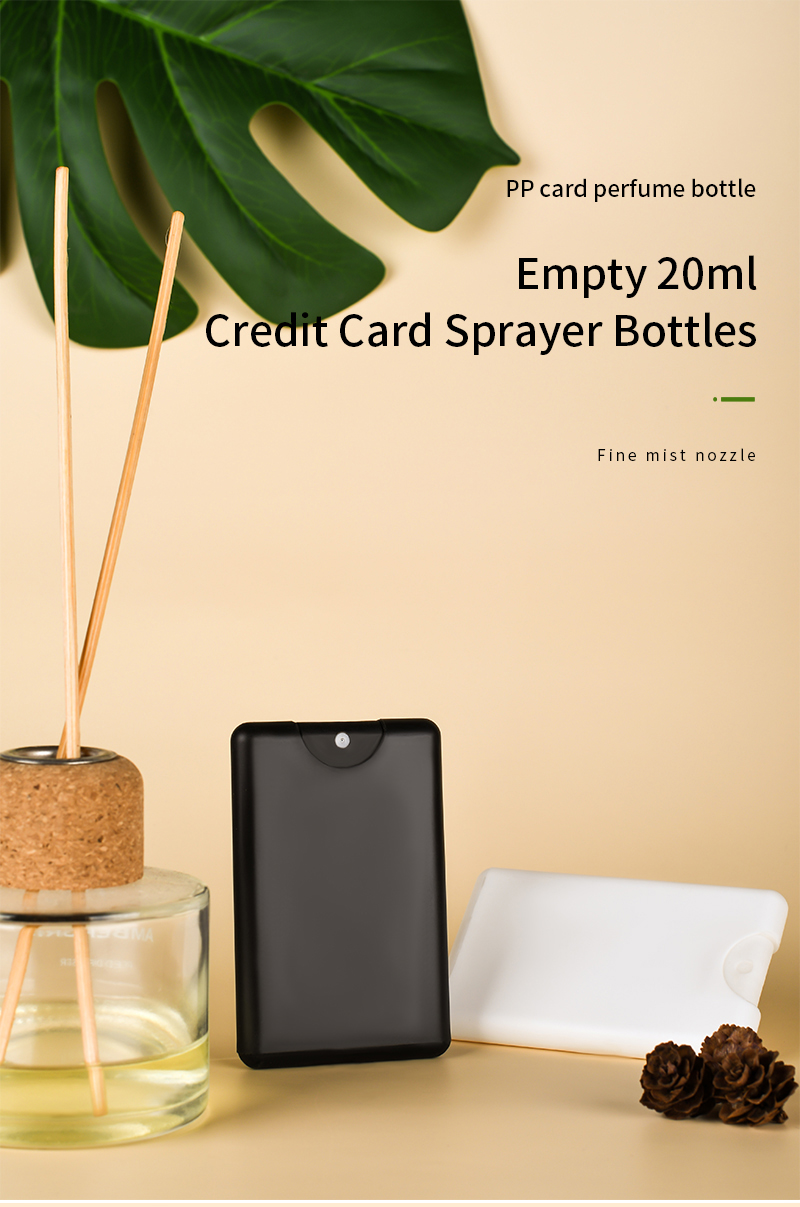 pp plastic pocket sized 20ml white black card perfume bottle with spray cap