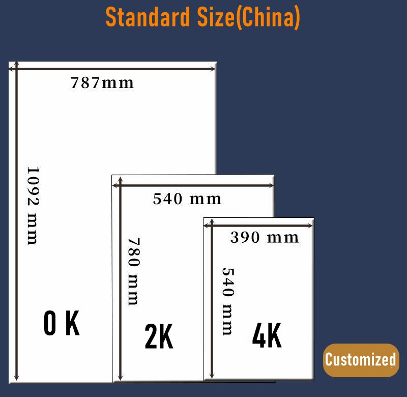 7. Grammage: 70g,80g,90g,100g,105g,115g,120g,130g,135g,140g,150g,157g,200g,220g,250g,300gsm,350gsm