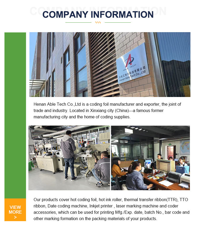 manufacturing city and the home of coding supplies. Our products cover hot coding foil, hot ink roller, thermal transfer
