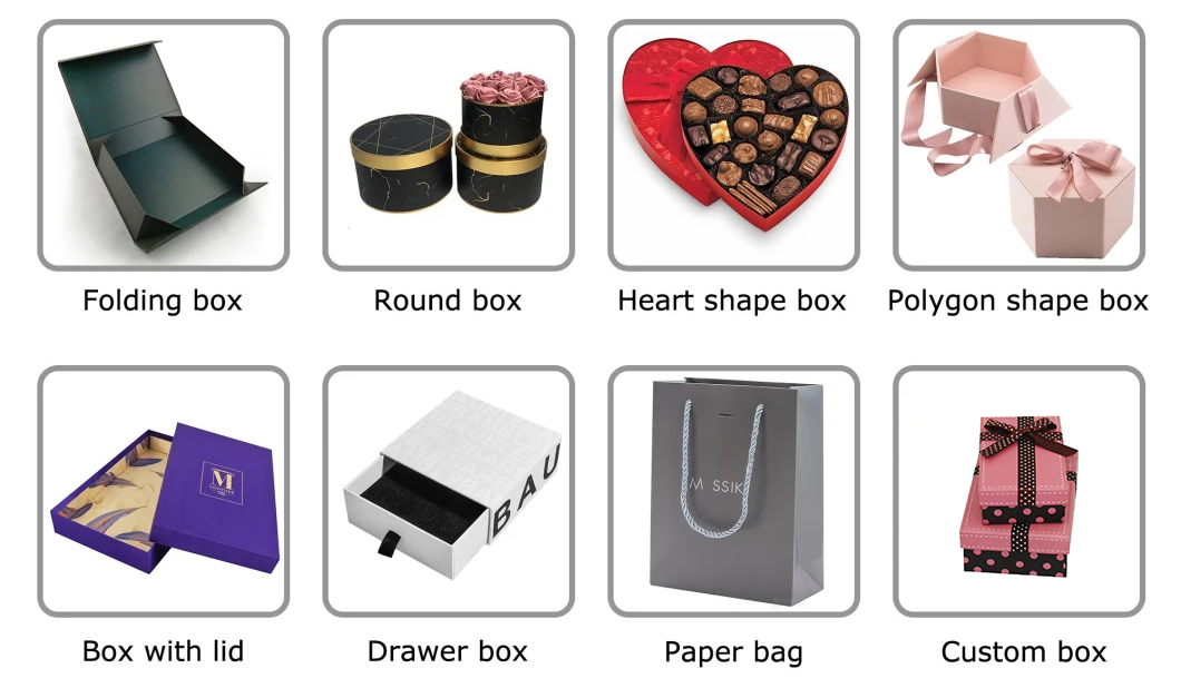 PRINTING | Lid and base box, folding paper box, clamshell paper box, foldable magnet box, book-style box, drawer style box, round paper tube |