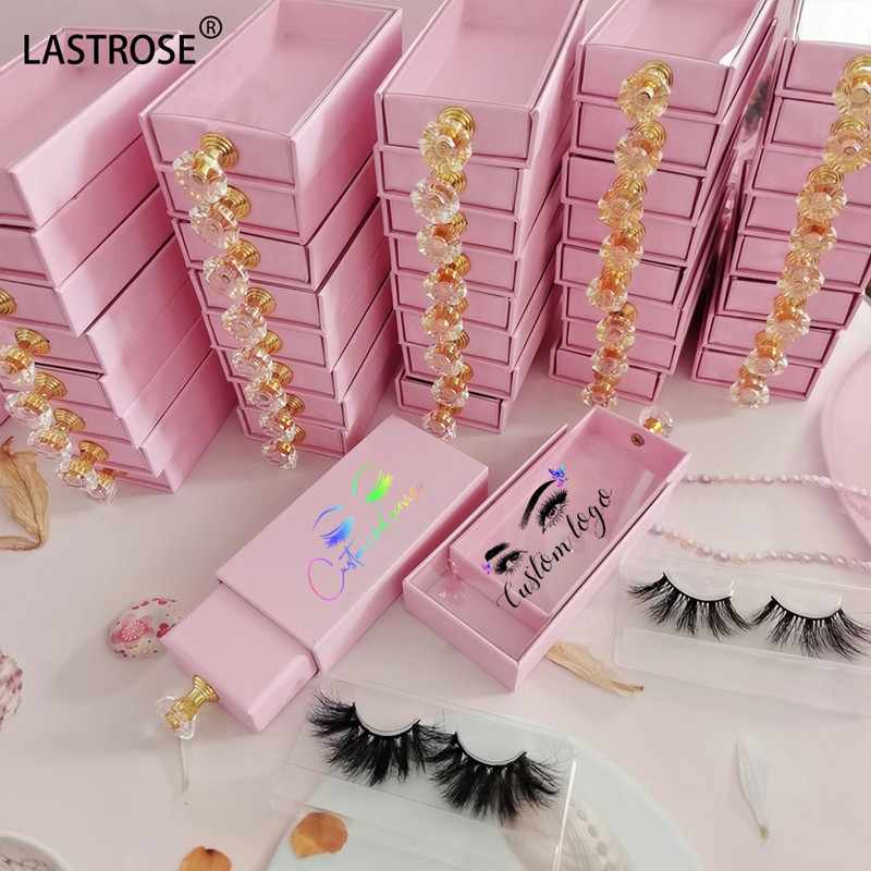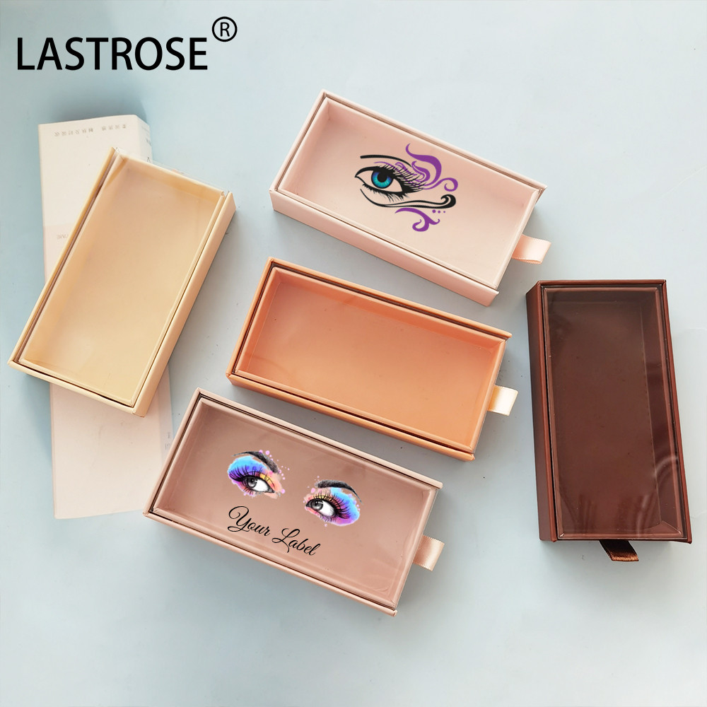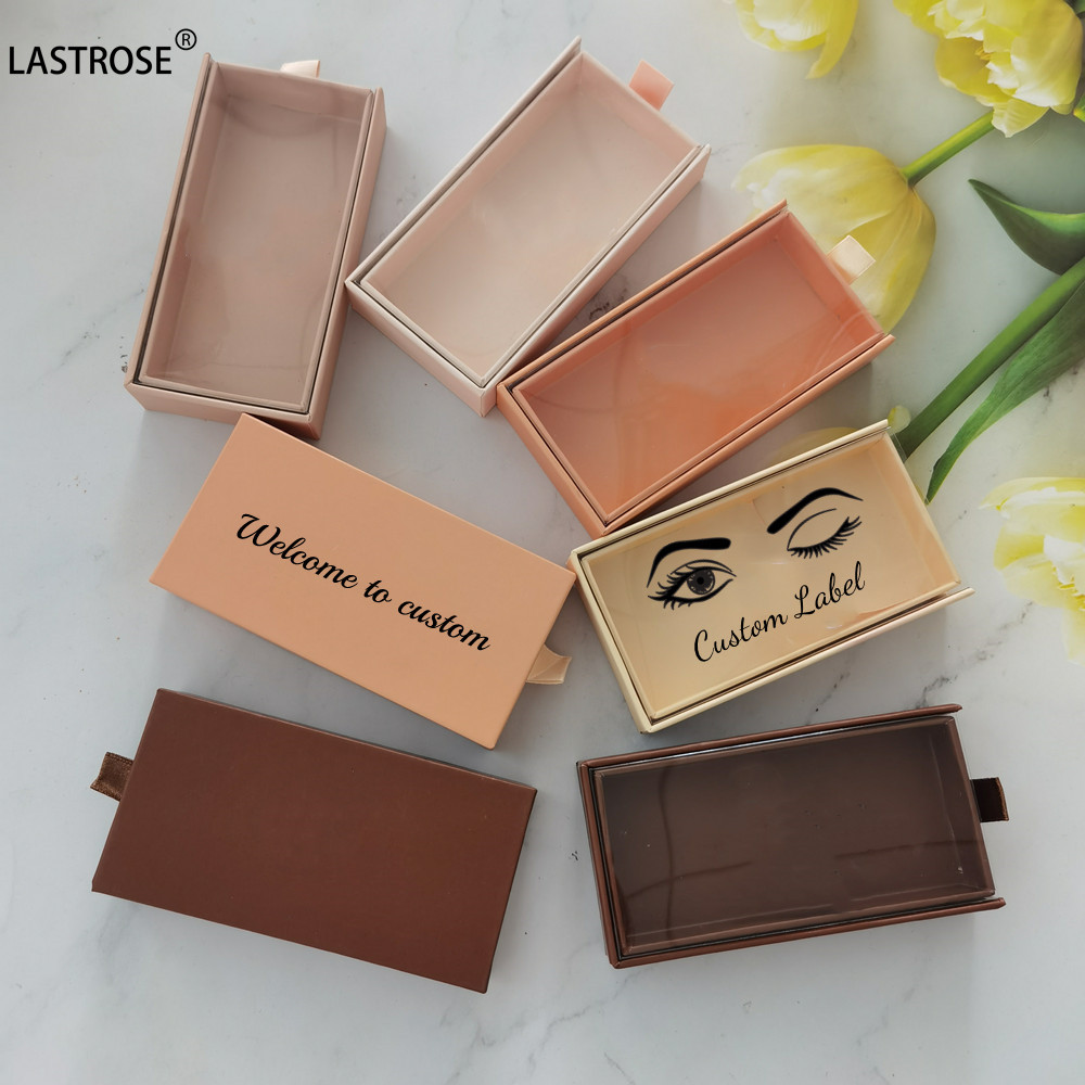 Wholesale mink eyelash packaging box drawer window nude box private label eyelash box packaging