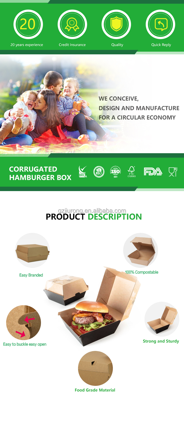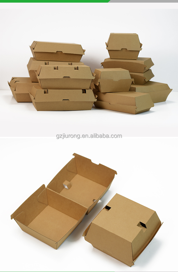 Corrugated Box Biodegradable Packaging Hamburger Take away Container Cardboard Paper Kraft Paper for Bread Hamburger