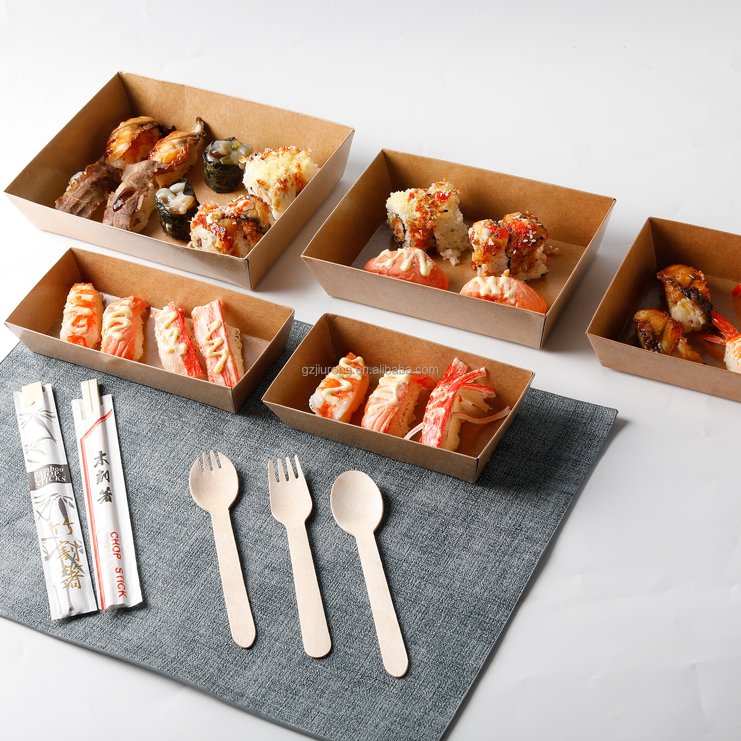 Jiurong 155*85*35mm Kraft Paper Sushi Takeaway Togo Box with PET Lid