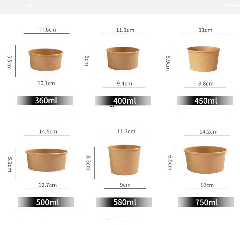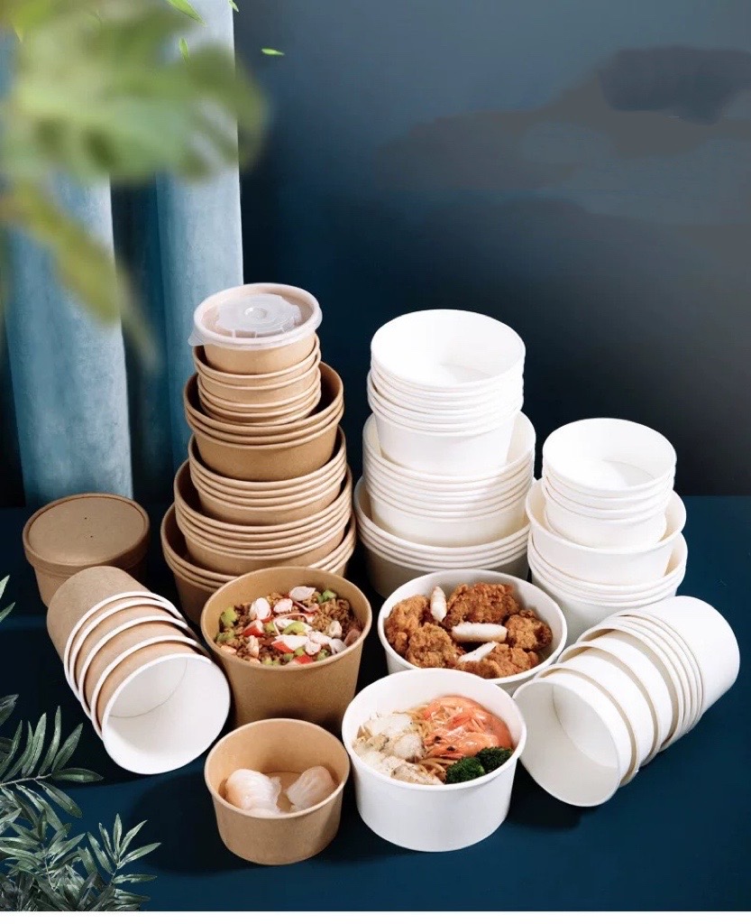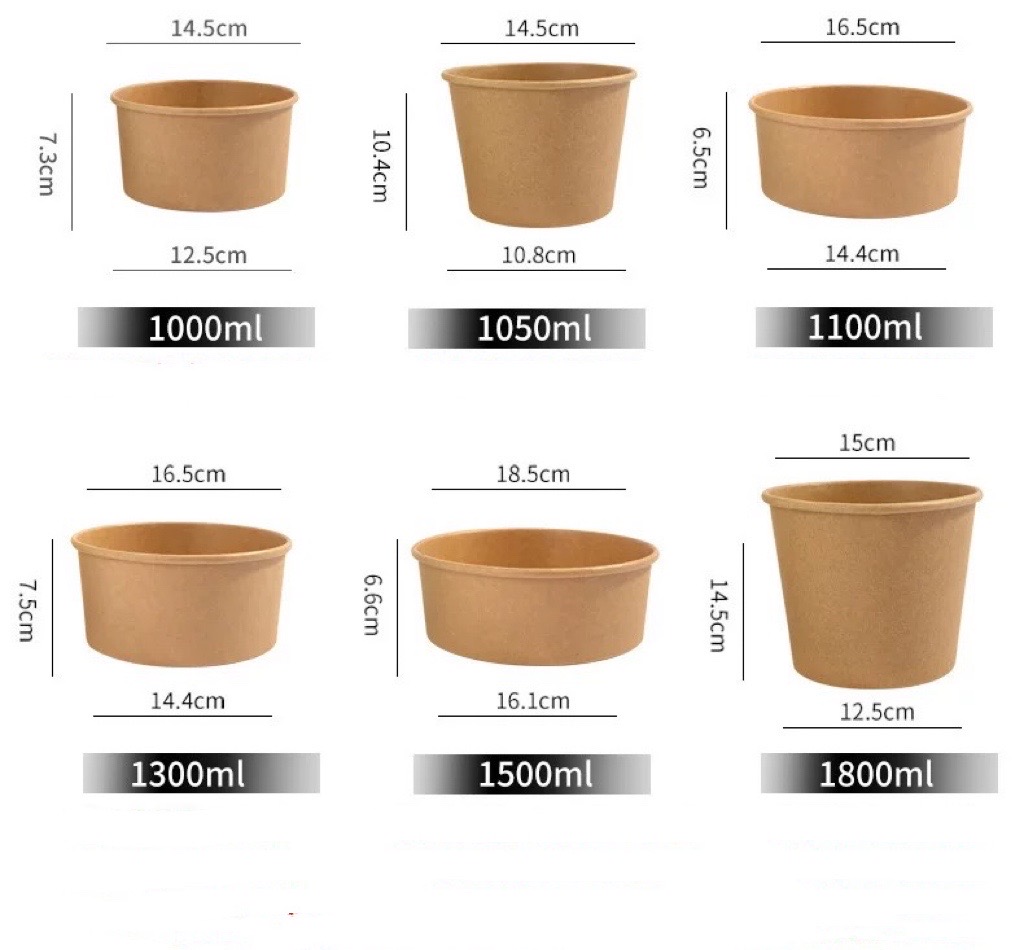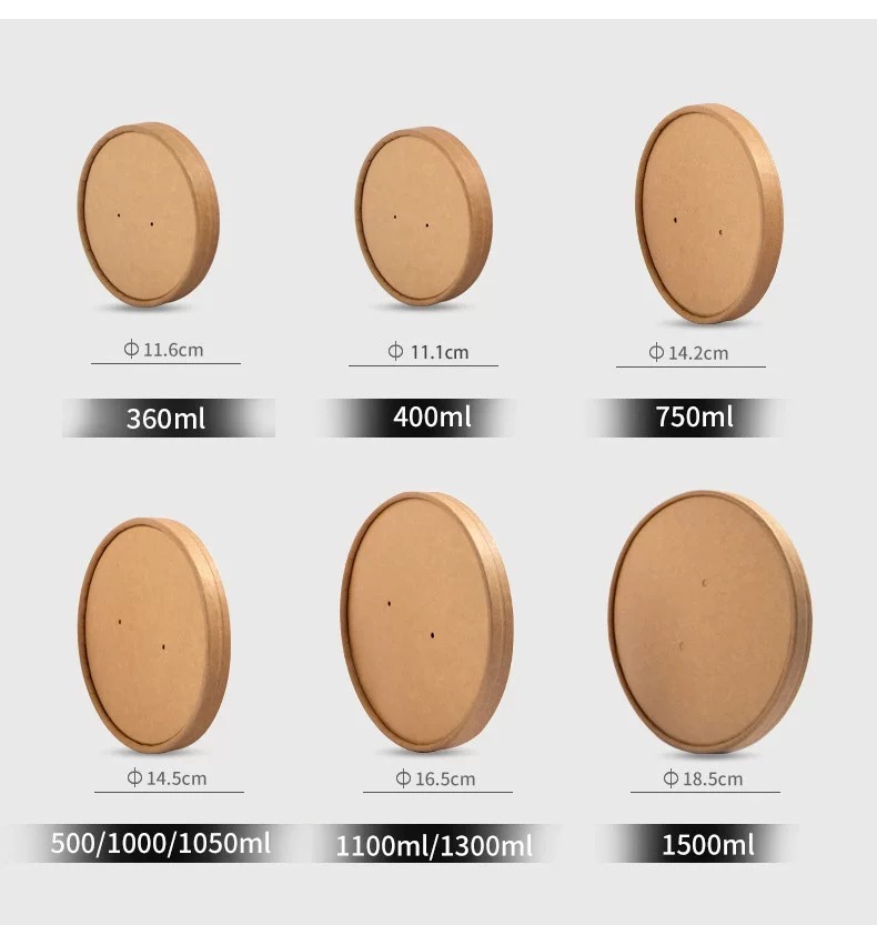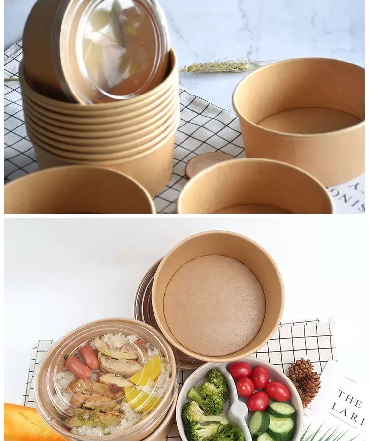 Disposable Food Container Waterproof And Grease Proof Brown Kraft Paper Soup Bowl With Paper Lid