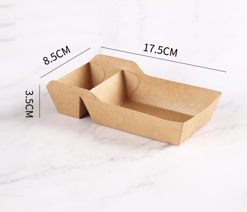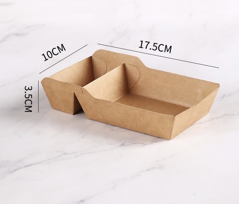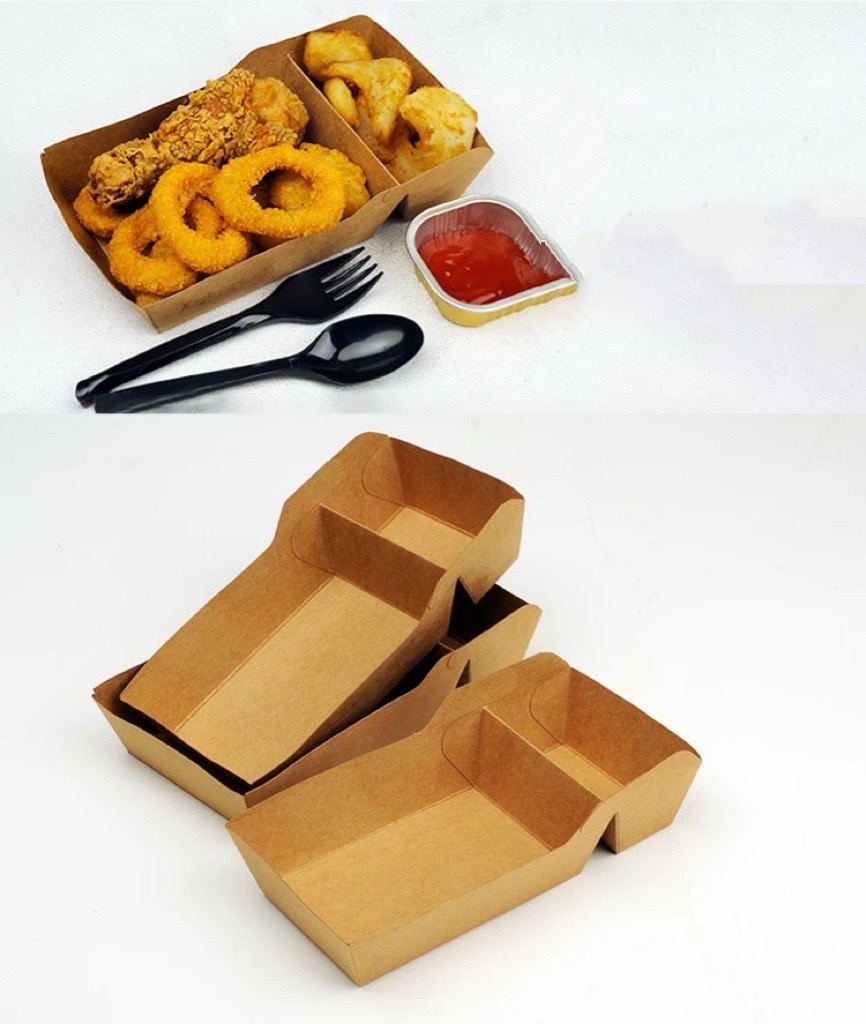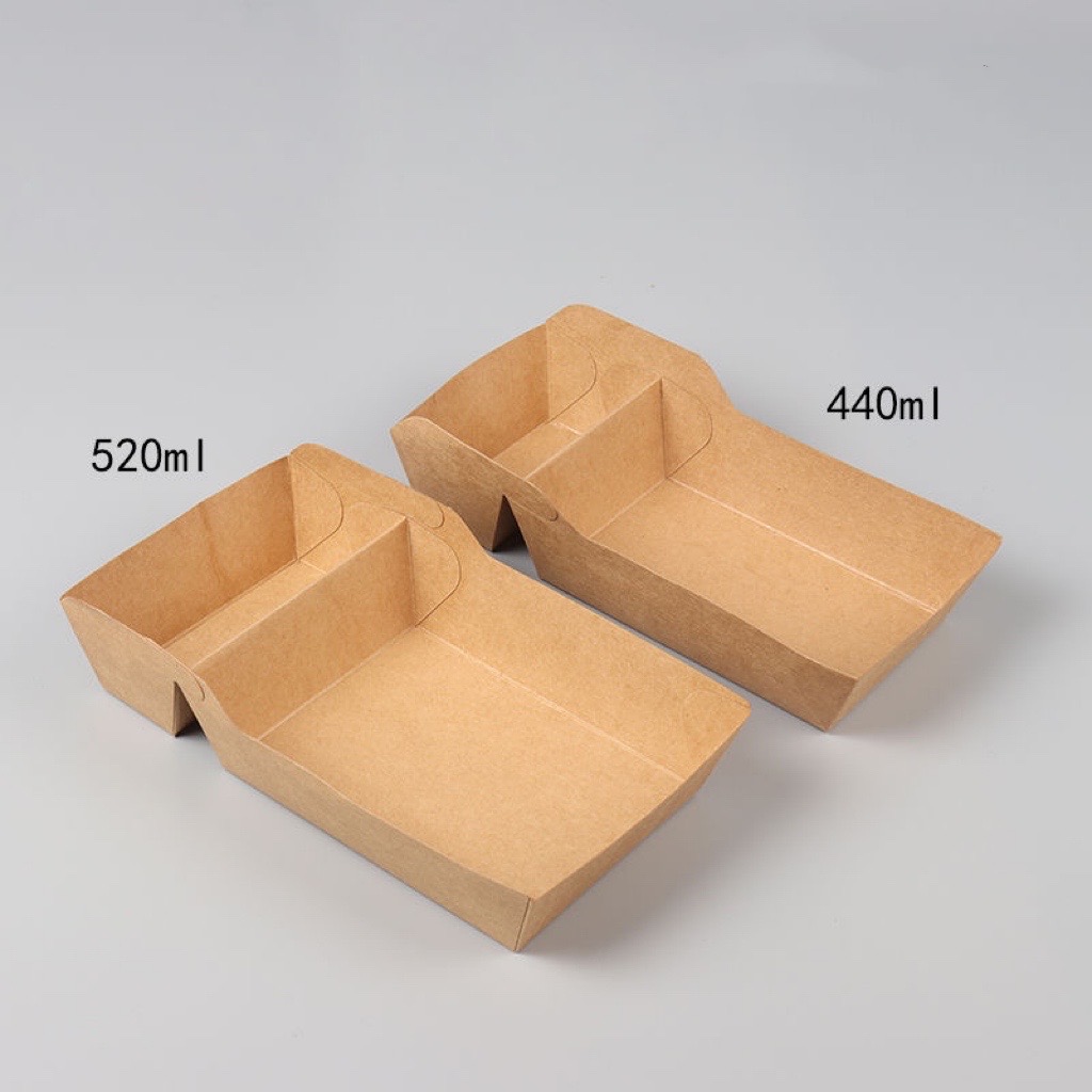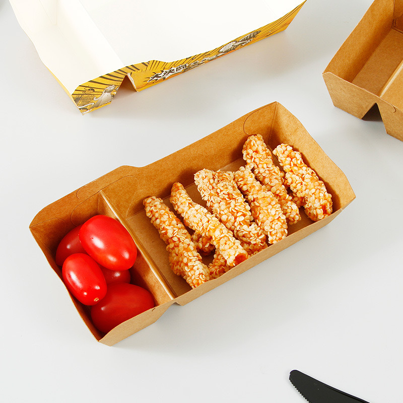 Paper Food Boxes Thickened Kraft Paper Grease Proofing Ship Boxes Disposable Fast Food Takeaway Boxe