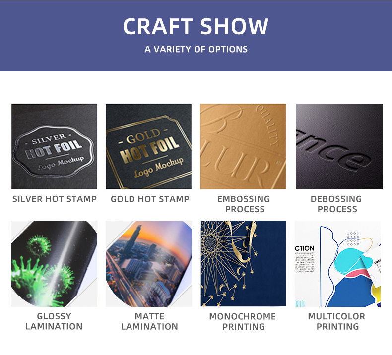Surface Finish | Glossy/Matt Lamination, Gold/Silver Hot Stamping, Embossing, UV Coating, Foil Stamping, Hologram Effect, etc. | |||