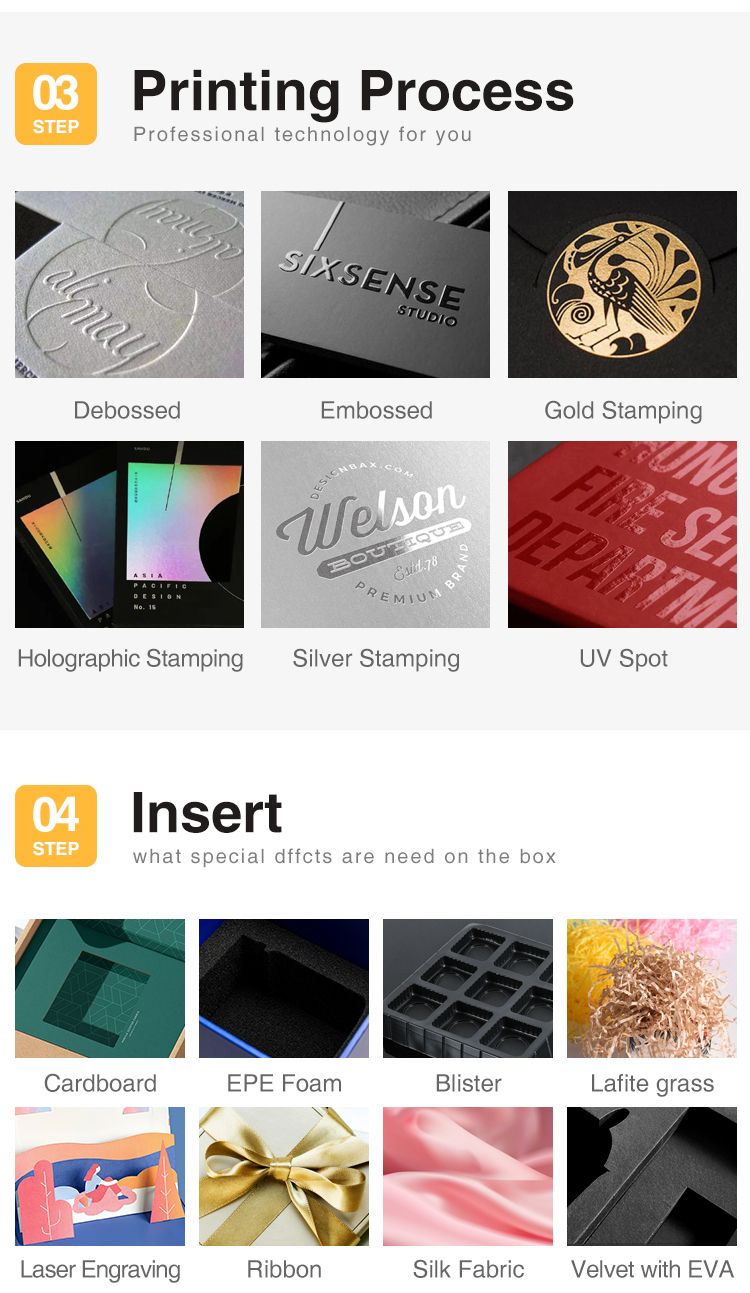 Embossing, Glossy Lamination, Matt Lamination, Stamping, UV Coating, Varnishing, VANISHING, Gold Foil