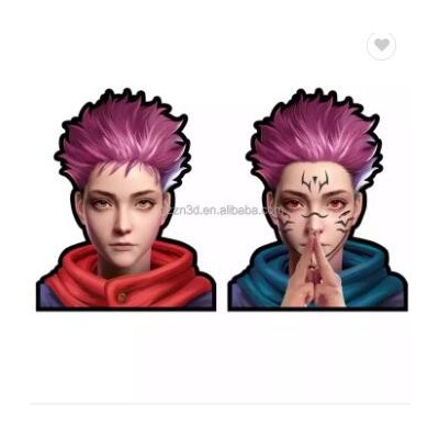 Anime lenticular stickers have an adhesive layer and a protective film for ease of use.