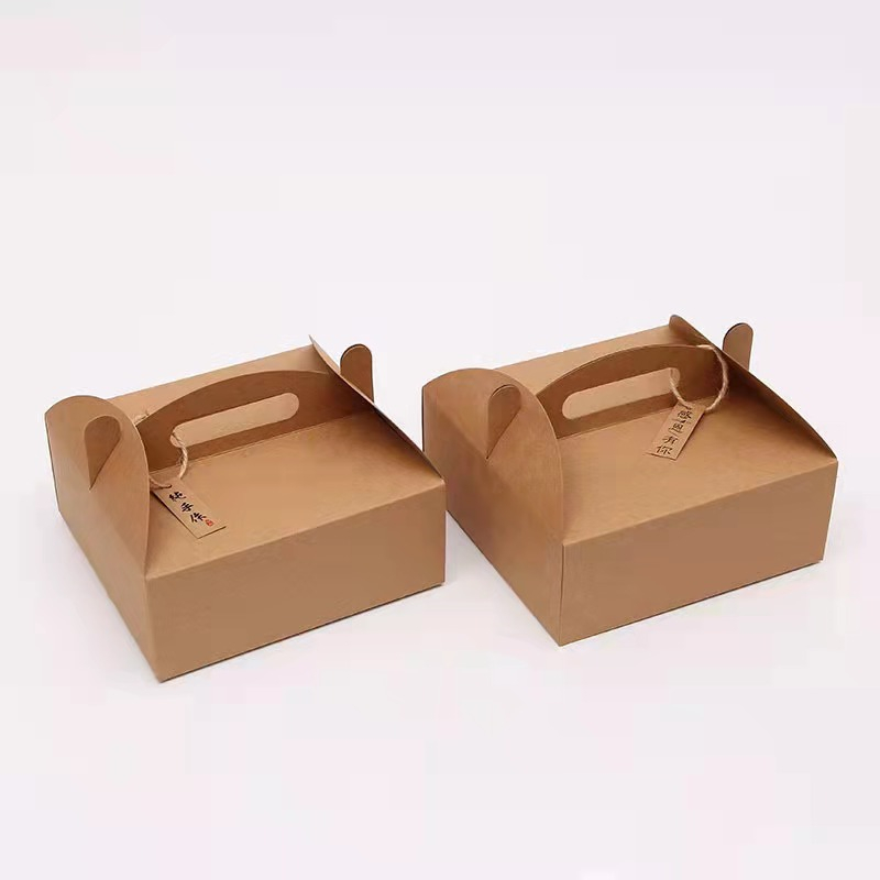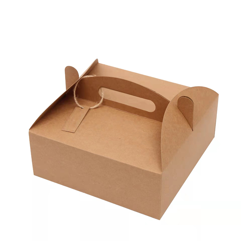 Manufacturer Biodegradable Cheese Cake Pastry Cake Takeaway Dessert Food Containers Handle Kraft Paper Packaging Box