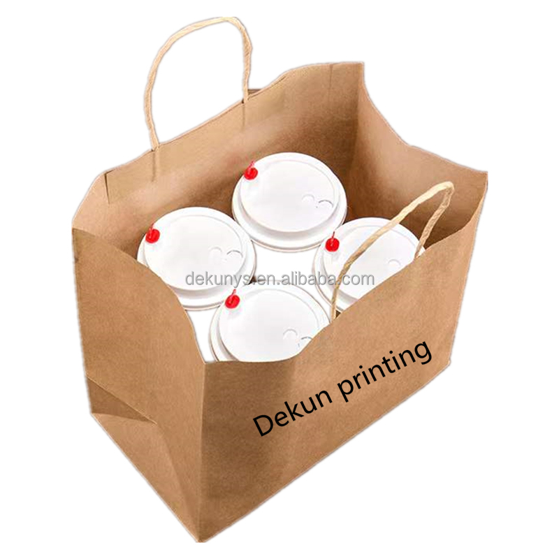 Factory cheap price paper brown bag logo printed coffee custom craft paper bag with twist handle