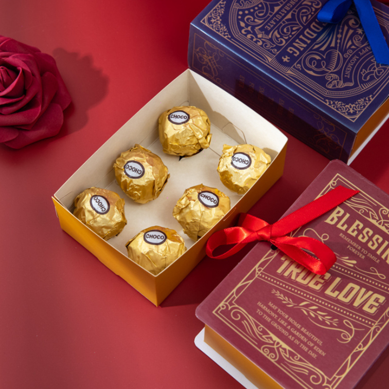 Factory price custom printed eco-friendly paper foldable chocolate gift box Ferrolite chocolate packaging box with ribbon