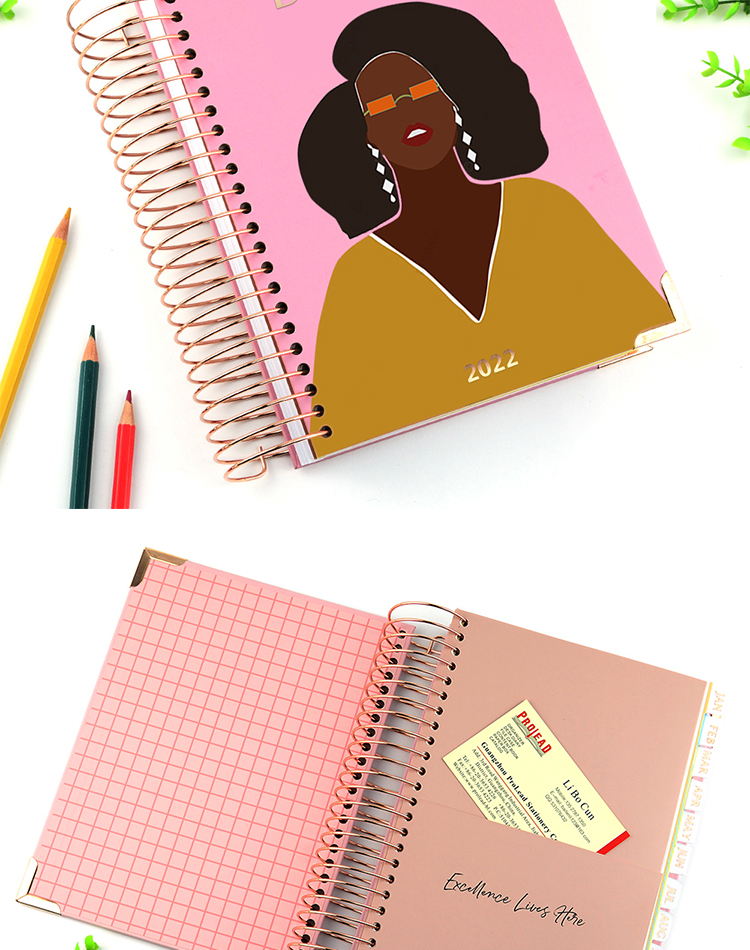 Custom 2021 2022 A5 Hardcover Floral Monthly Daily Planner Book Printing With Accessories