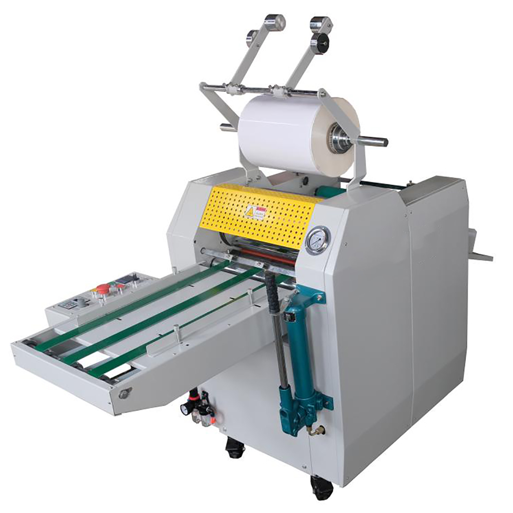 FM-390C hydraulic oil heating semi-automatic laminating machine (with pull off), the aircraft covers an area of small,easy to operate, fast, with automatic temperature control, anti-curl set, South Korea imported silicone. Manual pressure. Users only need to enter the meter on the need to break the length of the paper, you can complete the film after the pull off the rear plate with a receipt.The machine to pre-coated polyester film as material, can be widely used in window-type packaging boxes, food boxes, books, drawings, advertisements, certificates and other products of the surface coating, the printed film after the film, waterproof,durable, Clear.