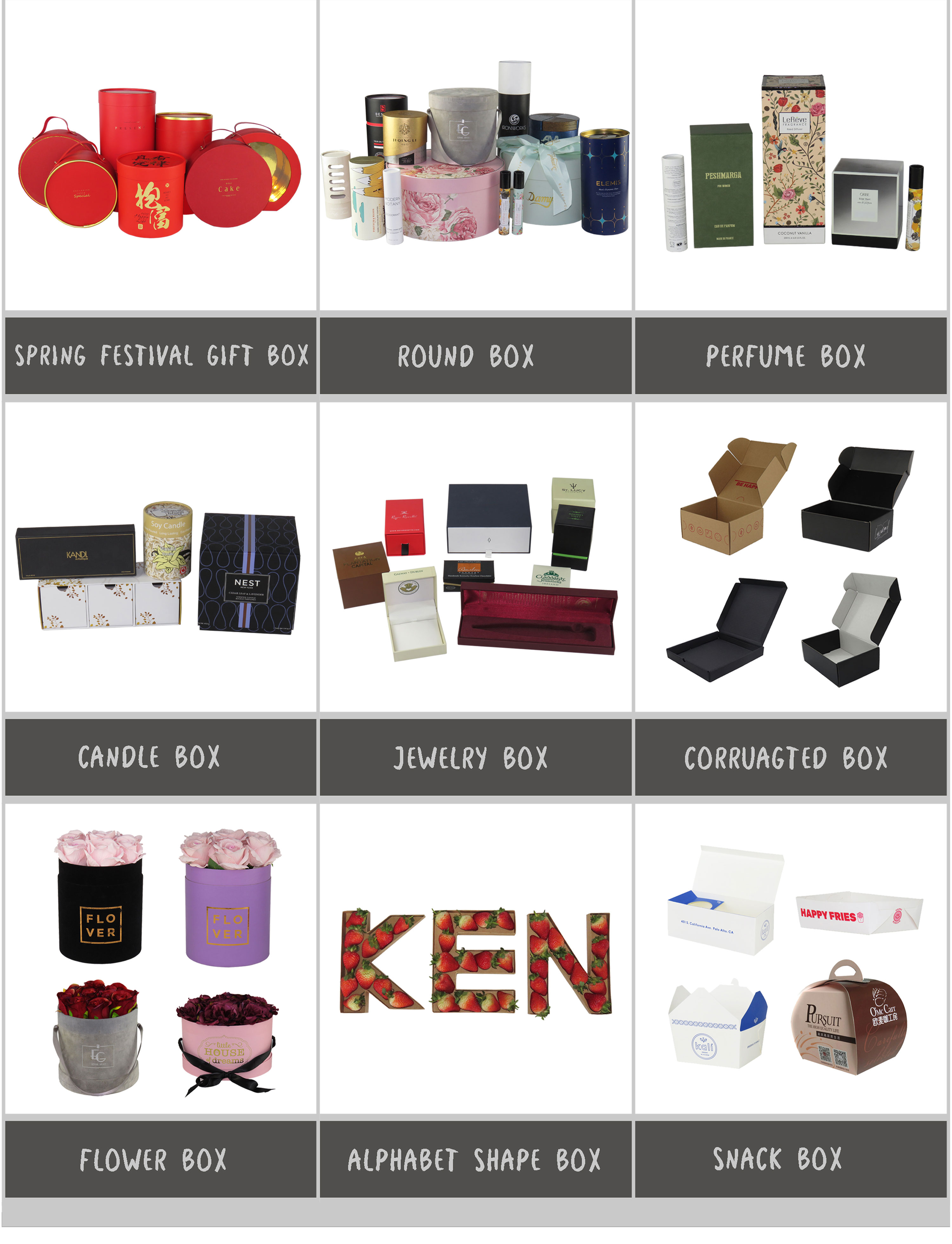 Rigid box, is special paper packaging box. It makes the box be in good-looking and luxury. The box styles could be customized according to clients' preference and design request. Generally, the style can be round, heart shape, square, column, pyramid shaped, etc. Personalized logo images could be hot stamped on the box. We are happy to provide various fancy and luxury boxes to clients all over the world. To express your love and surprise to your beloved family and friends, AM packaging would love to do a favor for you with customized boxes, with our superior design and sincerity.