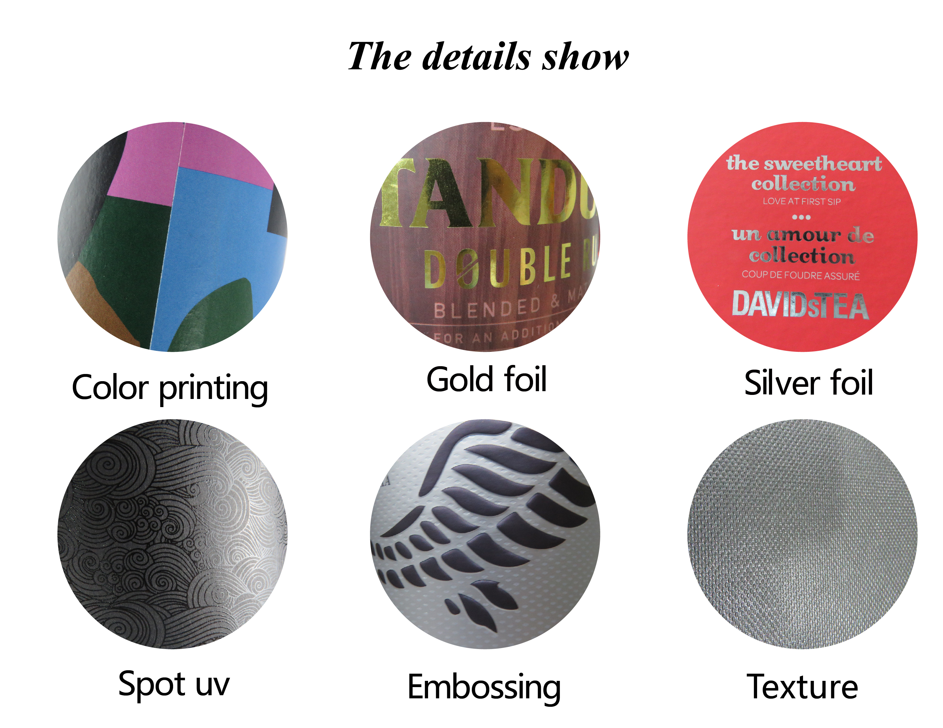 Printing | offset printing based on CMYK or Pantone color printing with your own logo. |