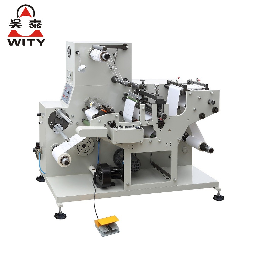 This is a machine with both slitting function and rotary die cutting function, and it comes with turret rewinding, which is suitable for small diameter rolls. It is suitable for blank labels, and the process of rotary die cutting and slitting can be done in one time. The machine with functions of auto meter/piece counting, auto stop and photocell sensor for web-guiding as well. It is featured with compact size, fast speed, high efficiency, steady performance, and is easy to operate.