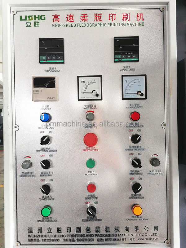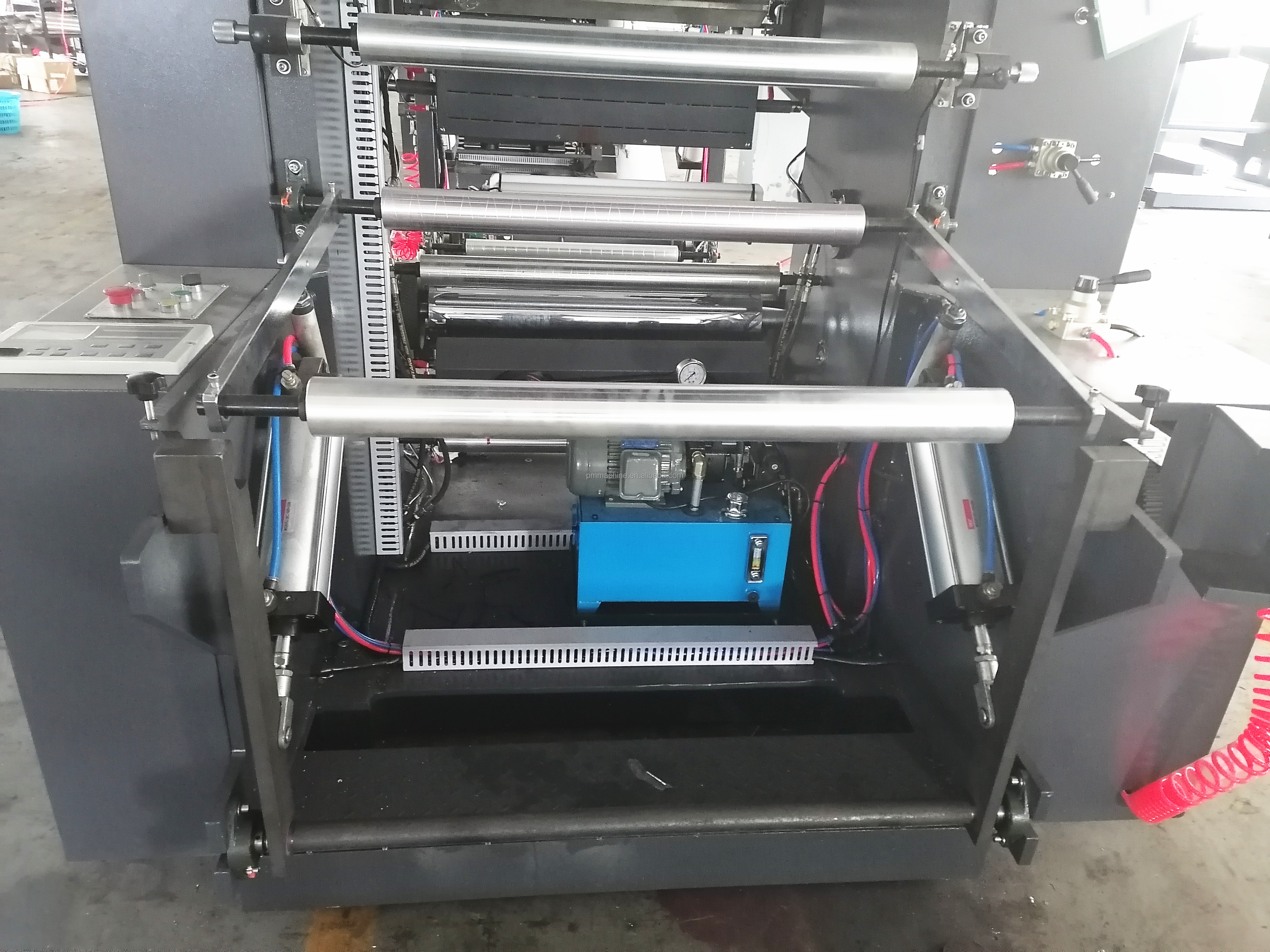 1.Easy operation, flexible starting, accurate color register. 2.The meter counter can set printing quantity according to the requirements. Stop the machine automatically at the quantity or when the material is cut off. 3.Manual printing cylinder lift and lower, it will stir the printing ink automatically after lifting. 4.The printing ink is spread by the anilox cylinder with even ink color. 5.Reliable drying system coordinated with high-speed rotation, it will automatically break circuit when the machine stops. 6.360°continuous and adjustable longitudinal register device. 7.The frequency control of motor speed adapts to different printing speeds. There are Jogging/Stopping buttons on the plate roller base and material rolling rack so as to make it easy operate the machine when the plate is installed.