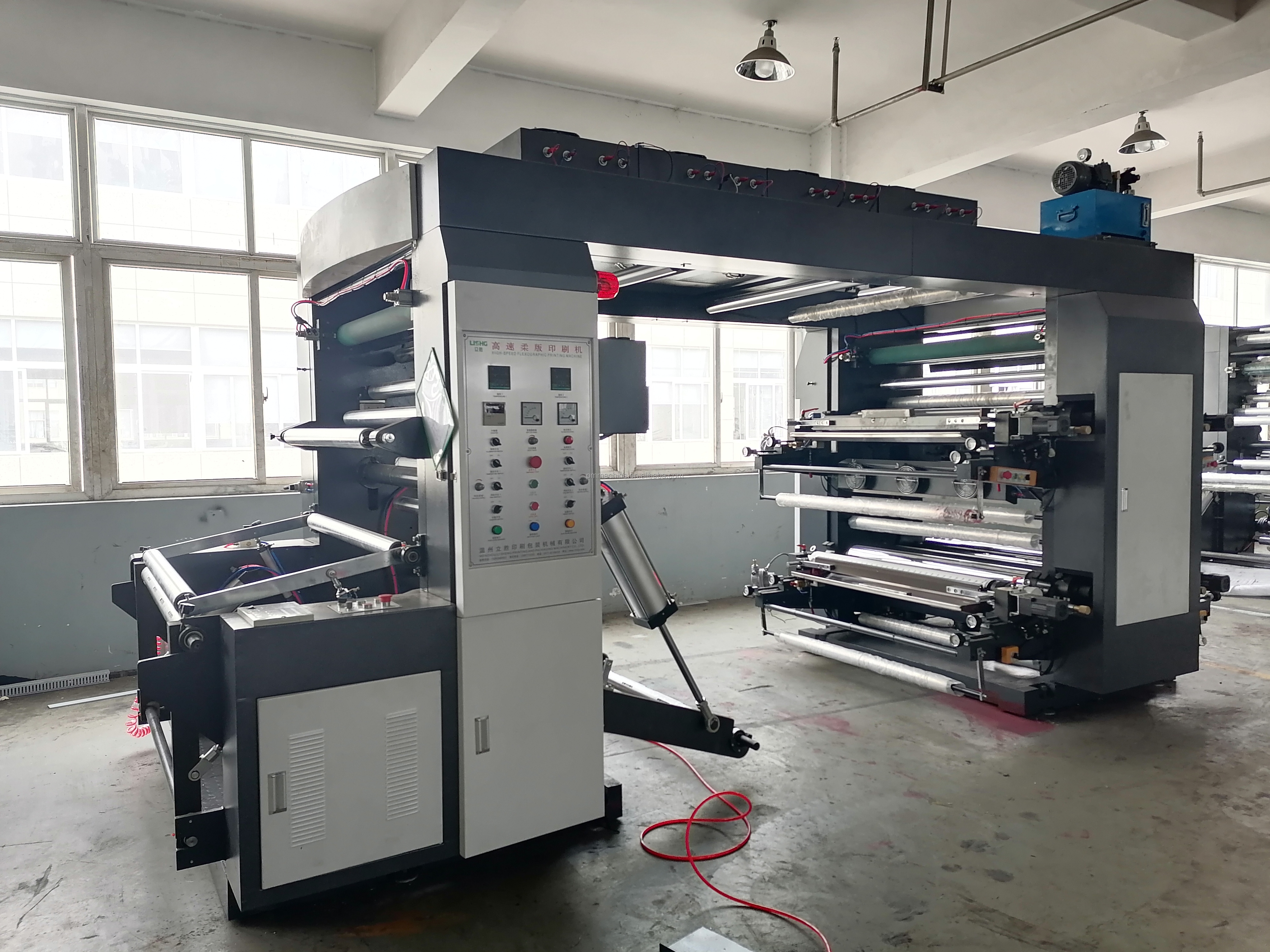 Flexographic printing machine is suitable for printing such packing materials as PE, PP bag, cellophane and roll paper, etc. It is a kind of ideal printing equipment for producing paper packing bag for food, supermarket handbag, vest bag and clothes bag, etc.