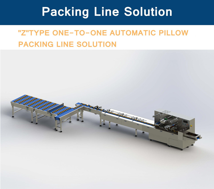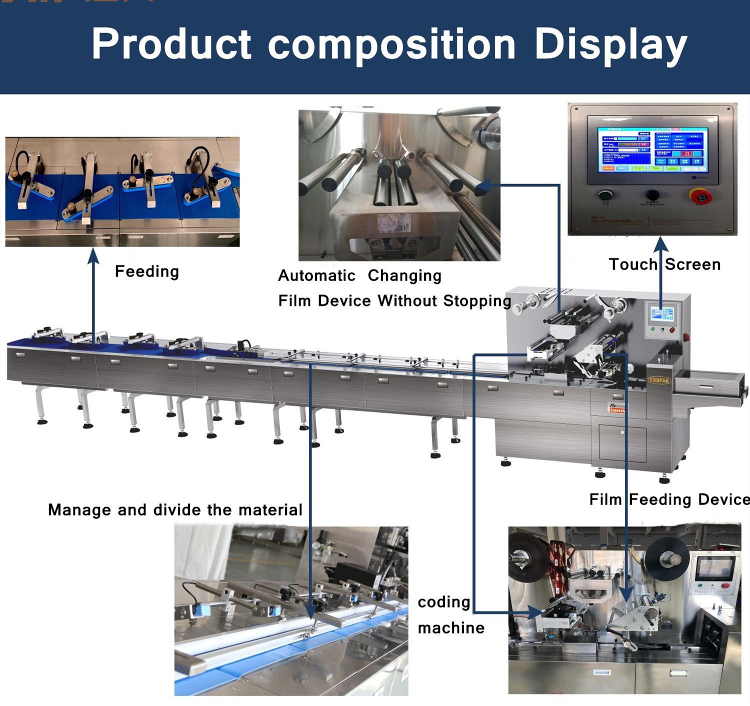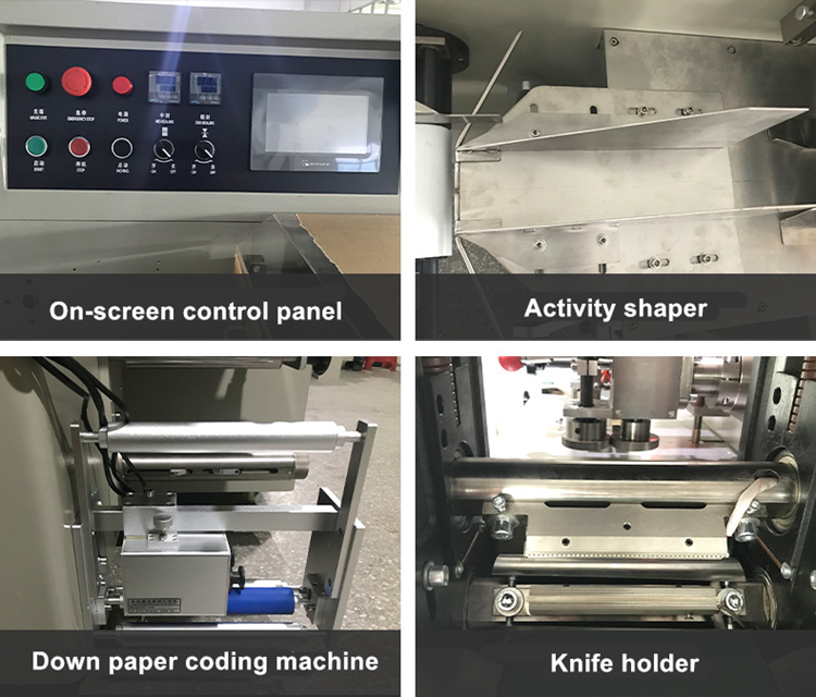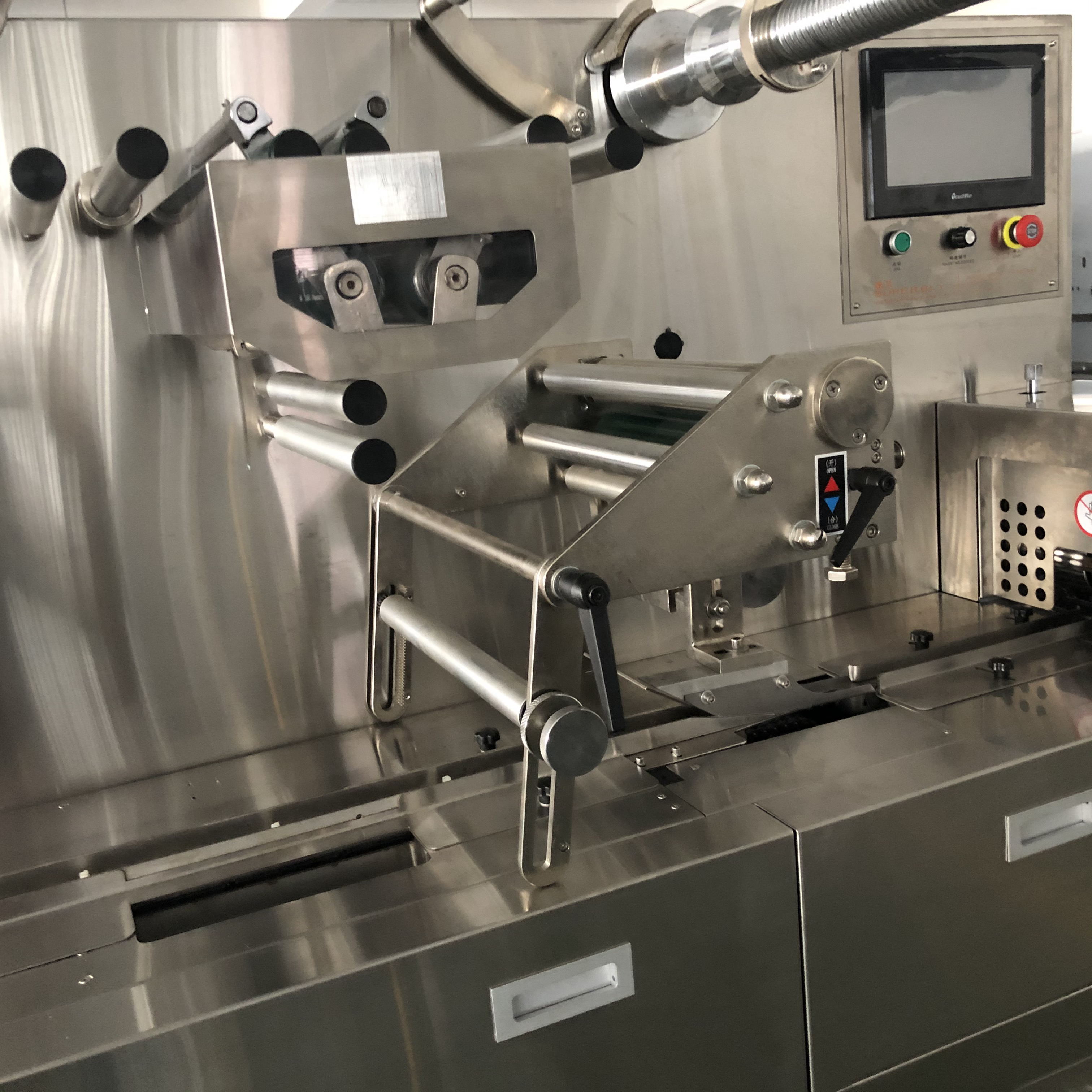 This flow packing machine is suitable for packing products as single piece or more pieces of candies in one bag.
