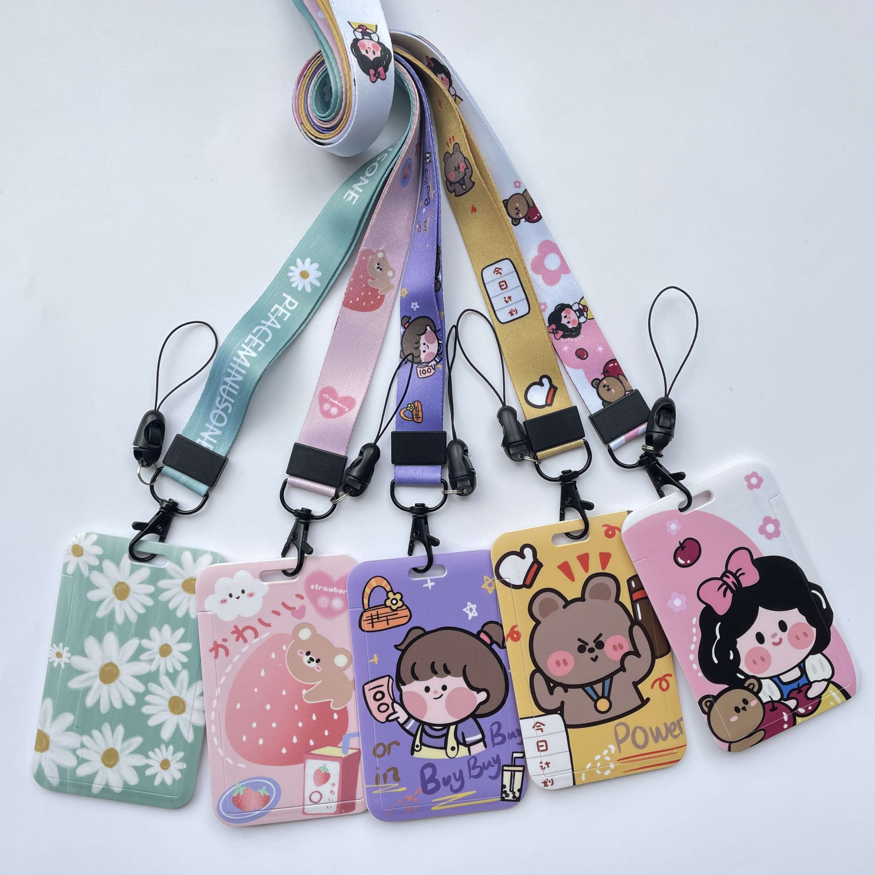 Custom Thermal Transfer Lanyard Card Holder Student Card Badge Cartoon PVC Work Card Holder