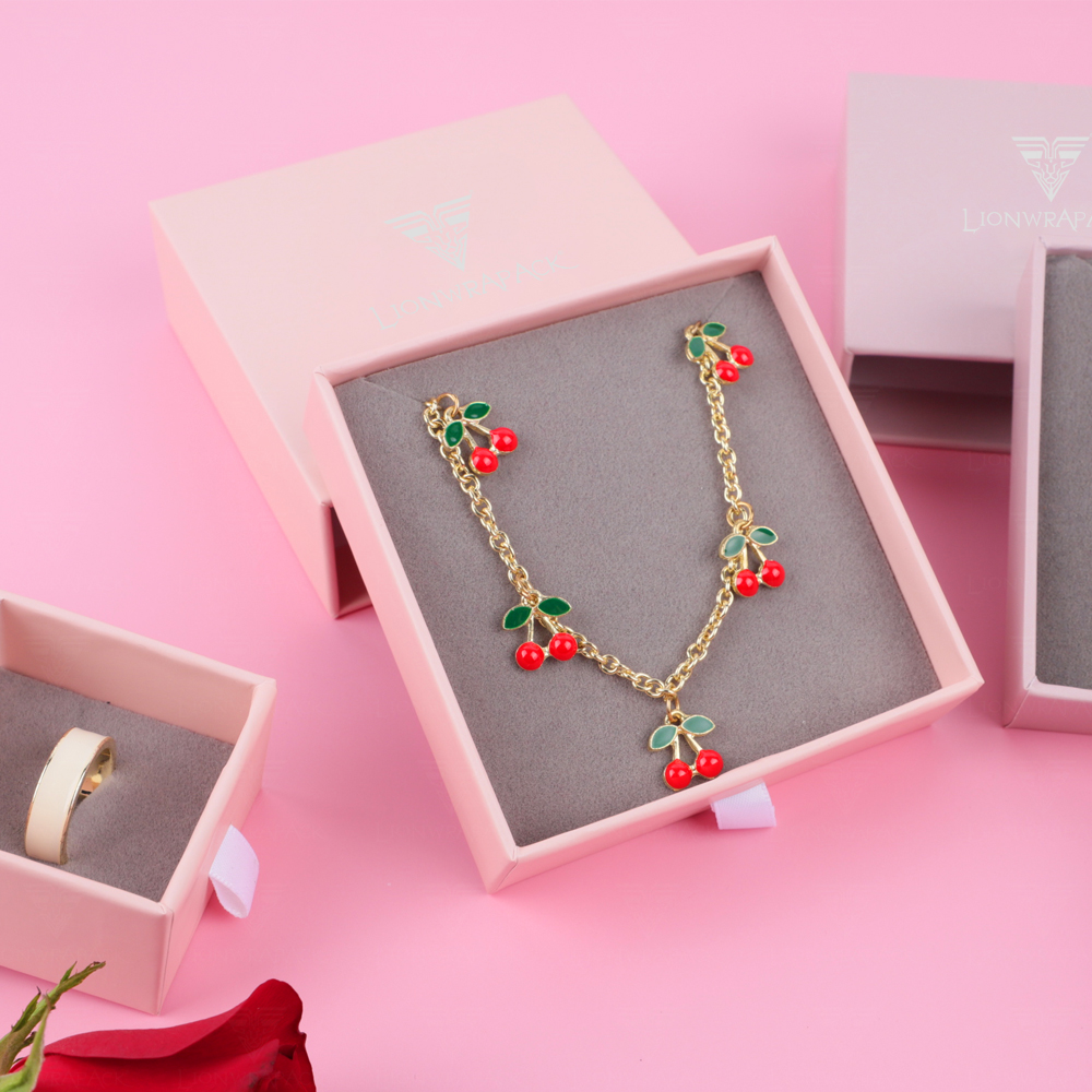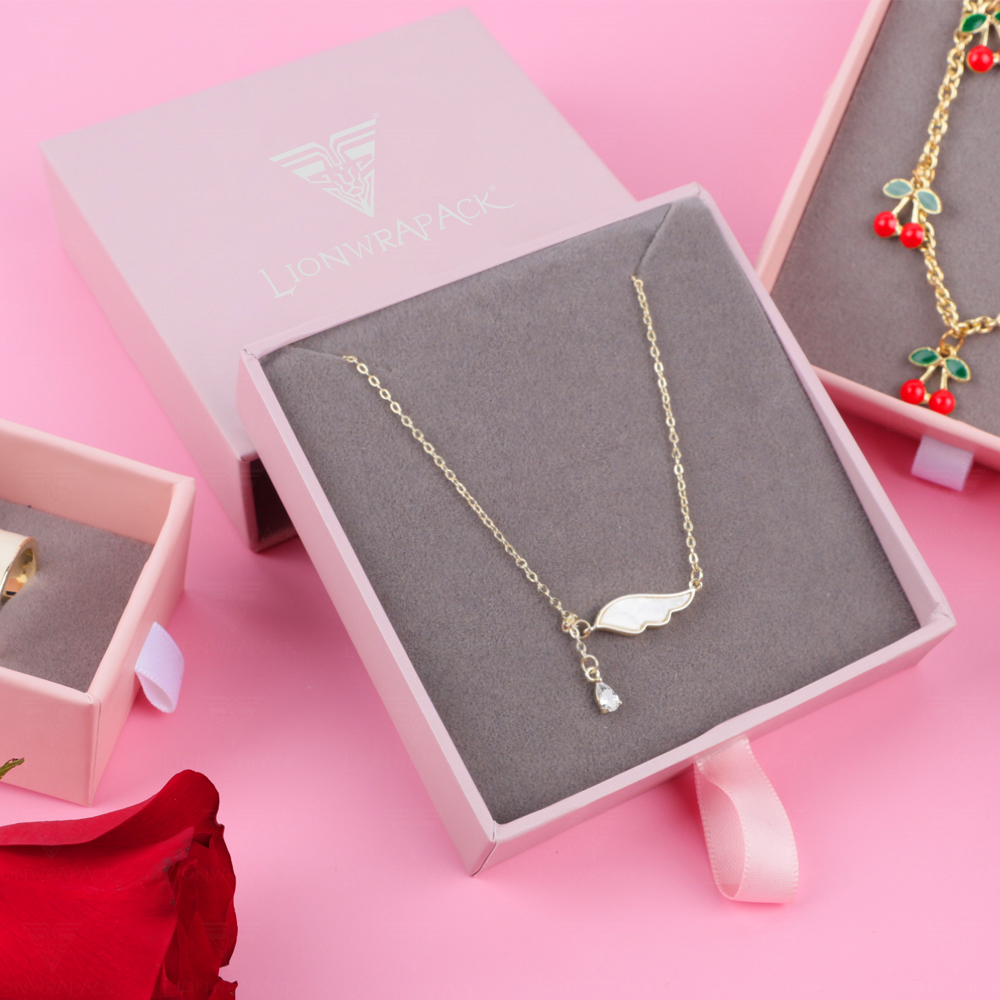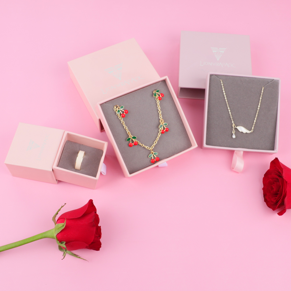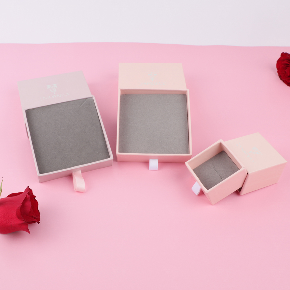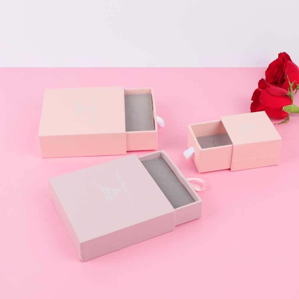 Free Design Custom Pink Sliding Drawers Paper Jewelry Packaging Cute Slider Paper Gift Box With Hand