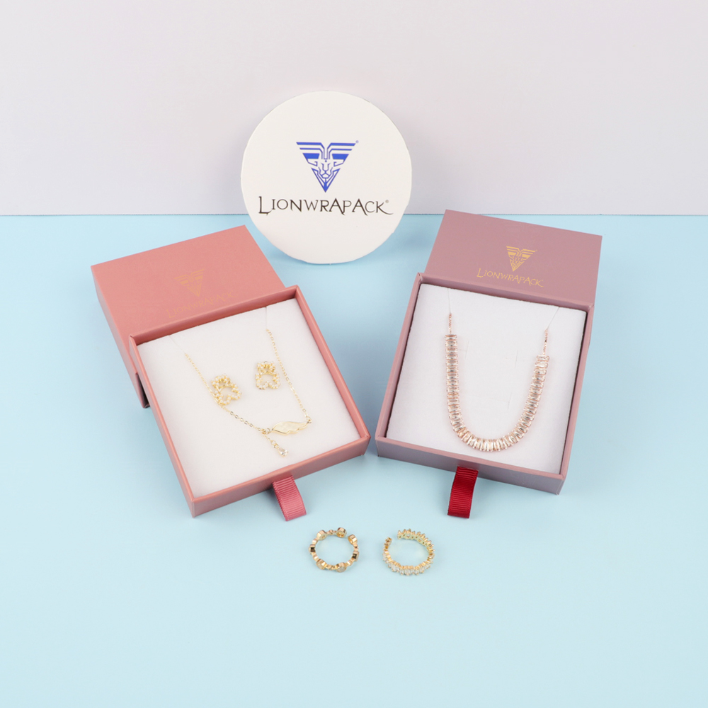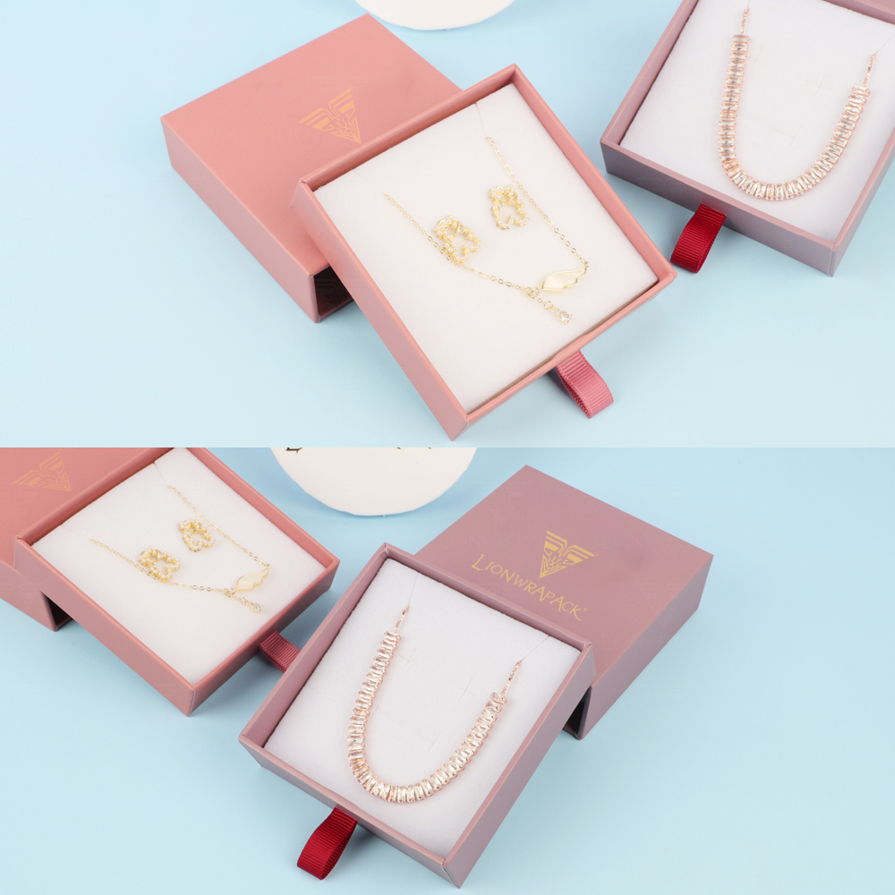 Free Design Customized Paper Cardboard Drawer Jewelry Storage Packaging Box Drawer Sliding Satin Nec