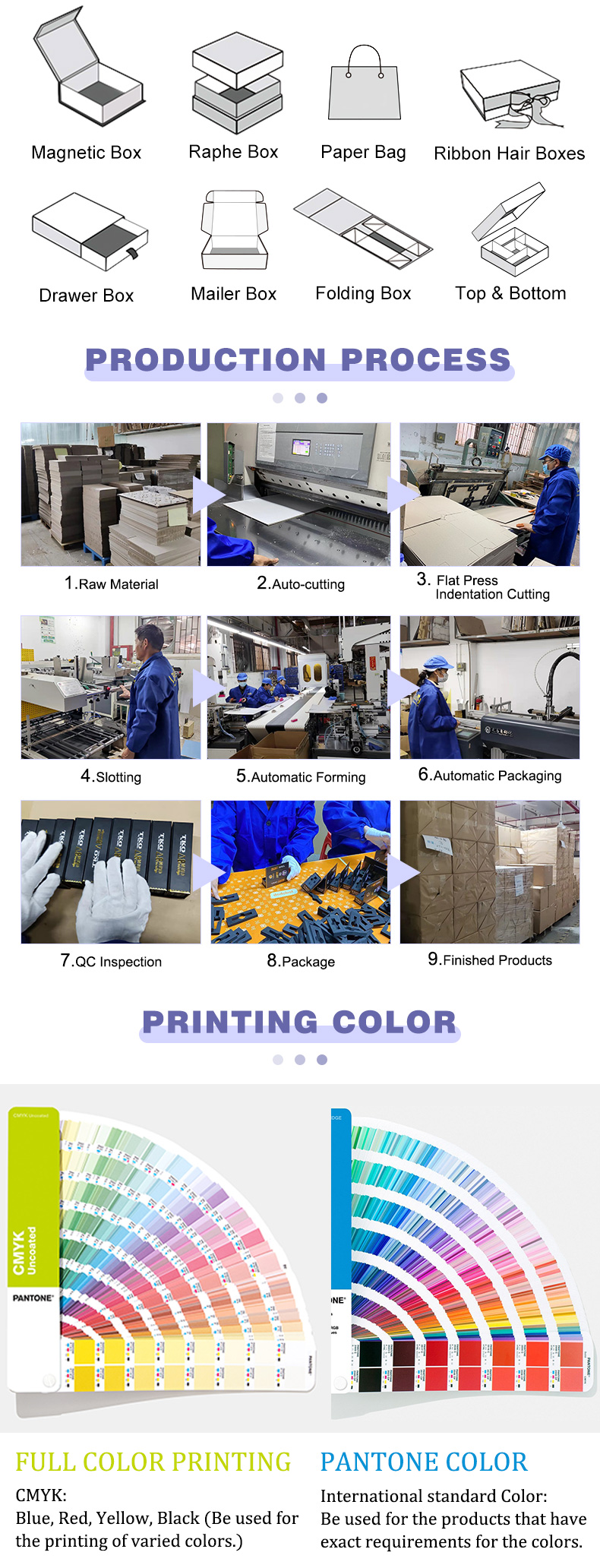 matte/glossy lamination,varnishing,embossing,hot stamp/foil,spot UV,silk screen,ENV calendering