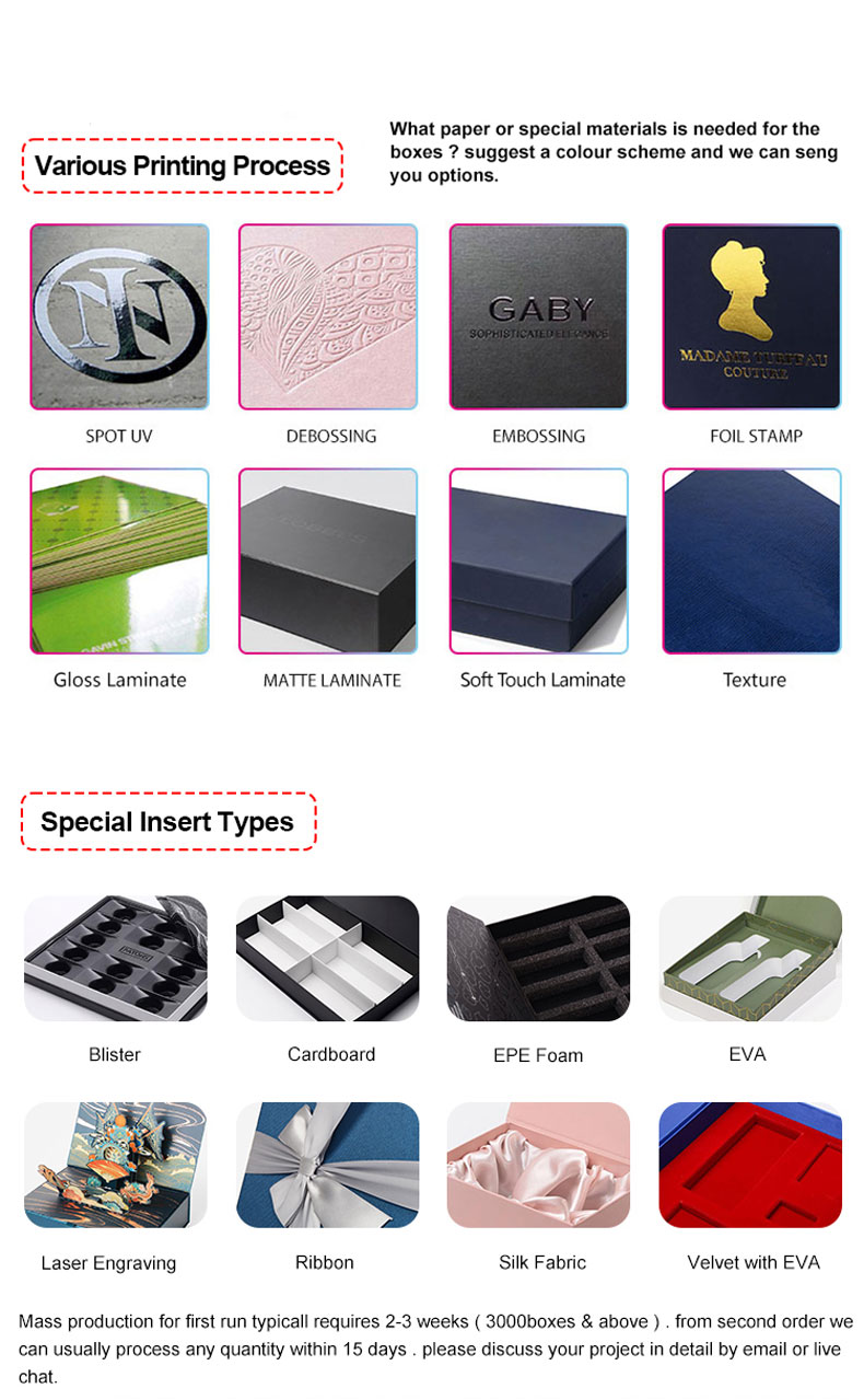 Gloss/ Matte Lamination, UV Varnish, Aqueous Coating, Flocking, Gold /Silver Stamping,Debossed / Embossing, Texture , Sport UV...
