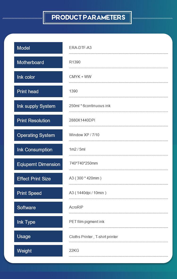 Erasmart Small Desktop A3 Inkjet T Shirt Printing Machine XP600 L1800 DX5 30cm Heat Transfer Roll Pet Film Tshirt A3 DTF Printer