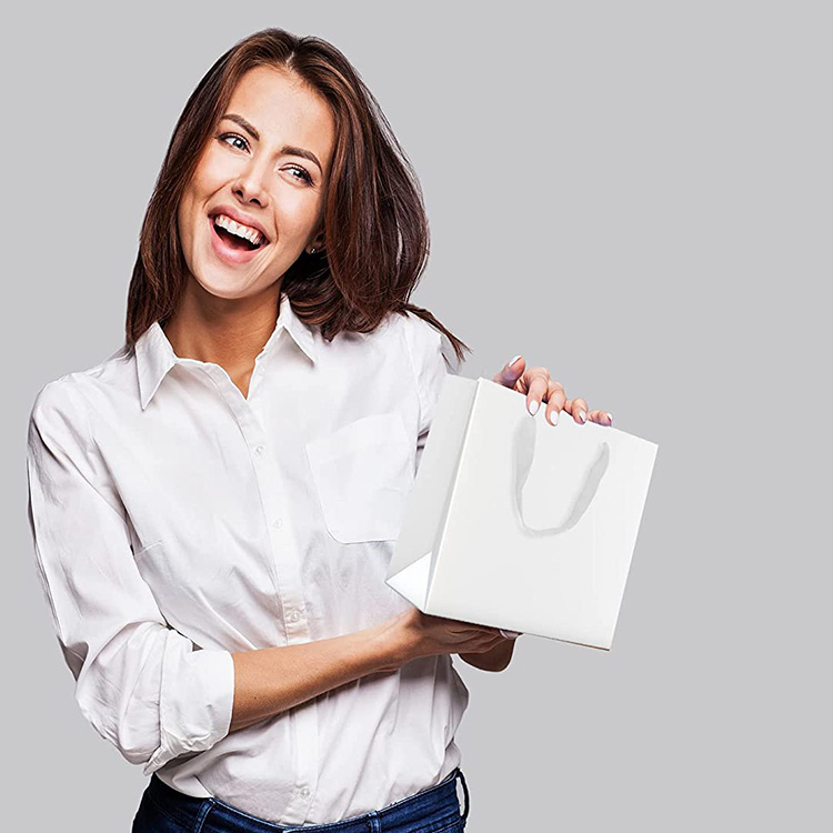 Custom White Card Craft Paper Shopping Tote Bag Personalized Thick Cardboard Art Paper Bag for Store Gift Package
