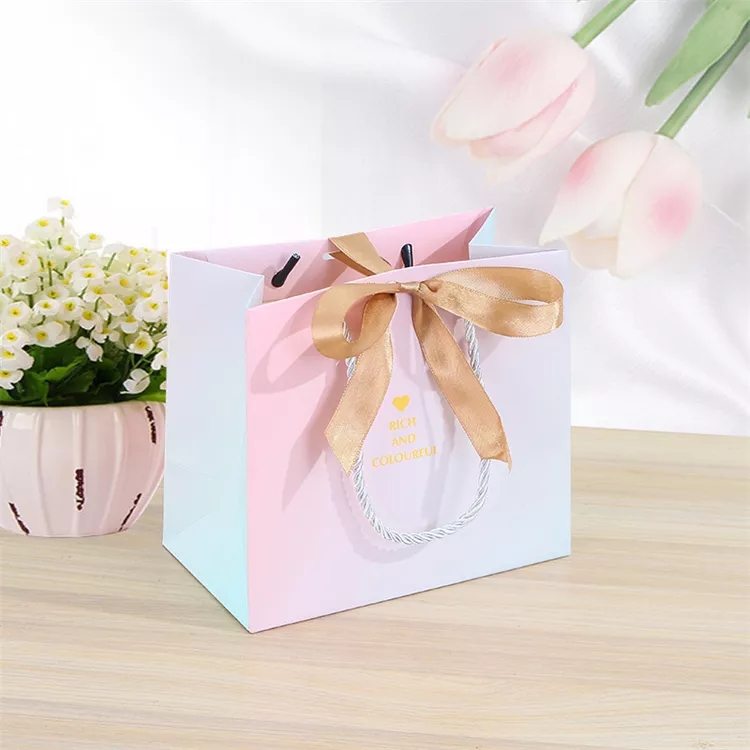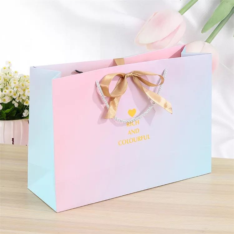 Custom Logo Paper Shopping Bag With Ribbon Handle bolsas de papel for Clothing Gift Packaging