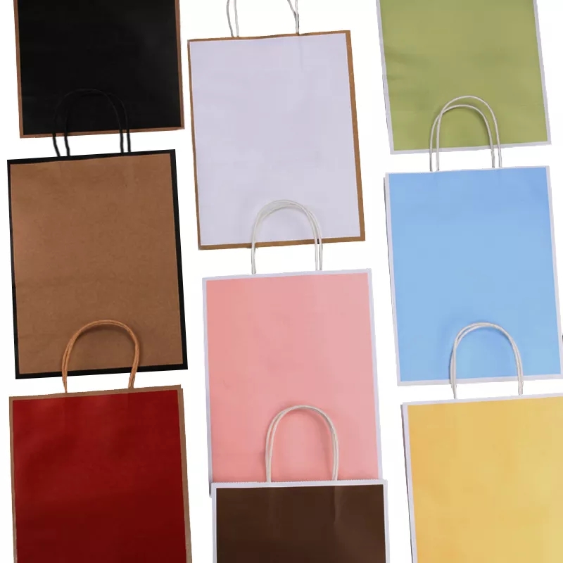 Wholesale Colorful Craft Custom Paper Bag With Logo Print Colored Brown Kraft Paper Bags with handle