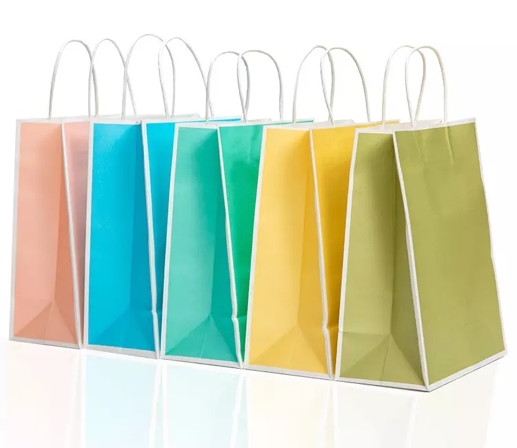 8 Colors Party Favor Colored Candy Kraft Colored Paper Bag with Handle for Birthday